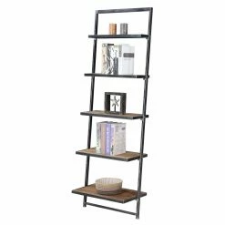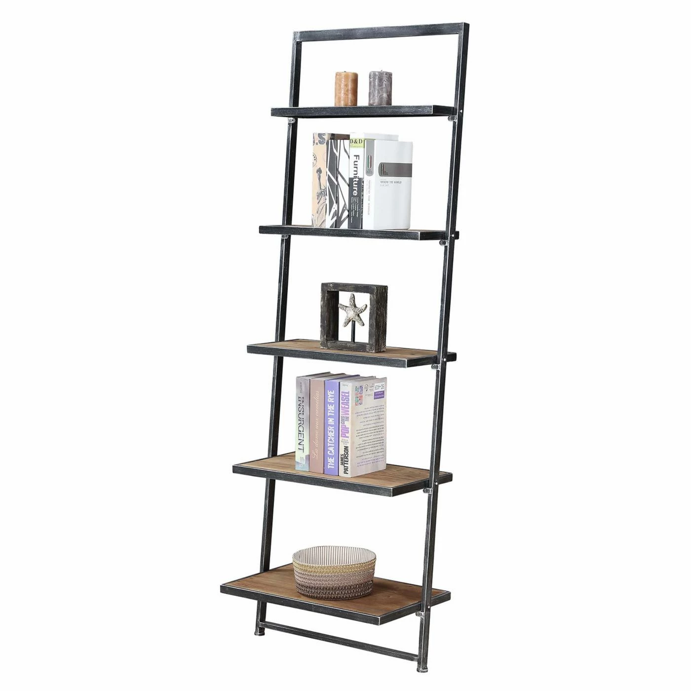 Showcase favorite items and bring an industrial look home with the Convenience Concepts Laredo 5 Tier Ladder Bookcase. Five fixed, open wood shelves ensure this angled ladder bookcase will offer plenty of room to display your collections. The open metal framework in a distressed black finish offers stylish support.
