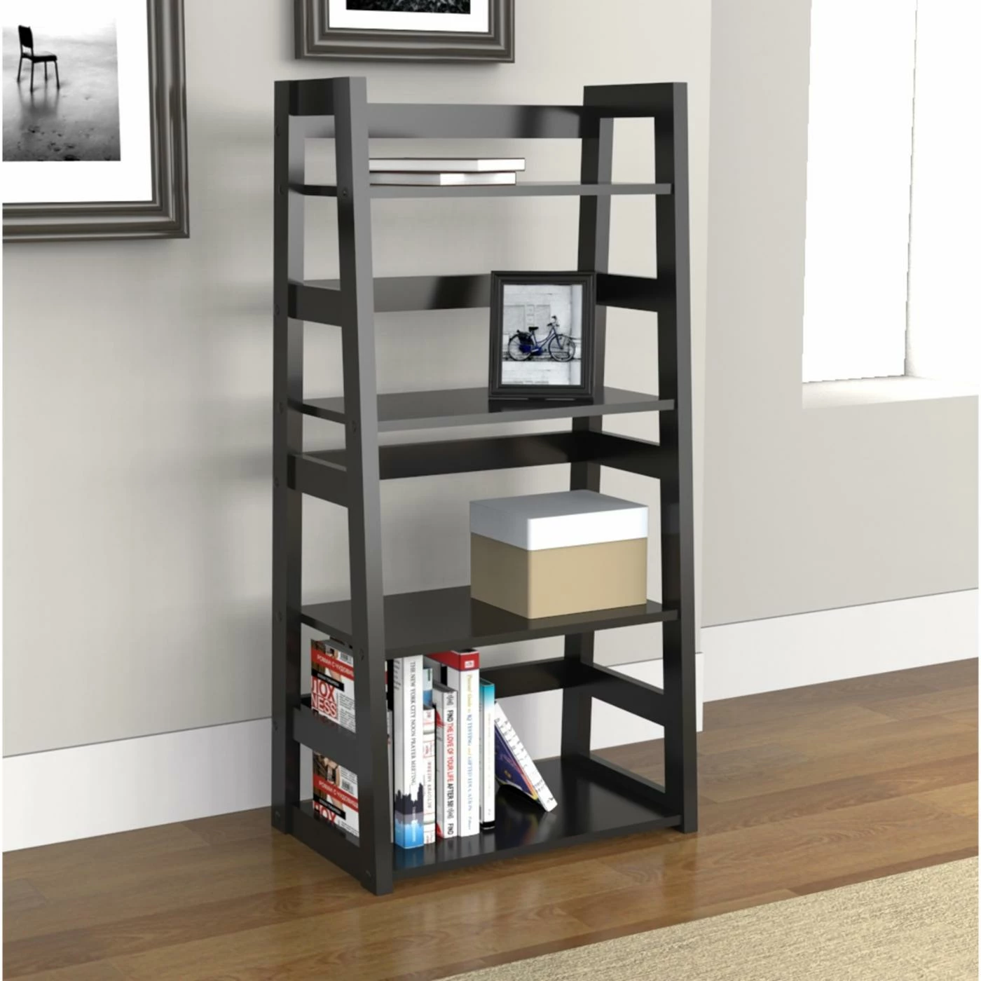 In a rich black woodgrain finish, the Convenience Concepts Trestle Bookcase – Black is a great place for books, pictures, collections, and just about anything else you want to keep on display. This traditional open-back trestle bookcase is plenty large for an office or living room.