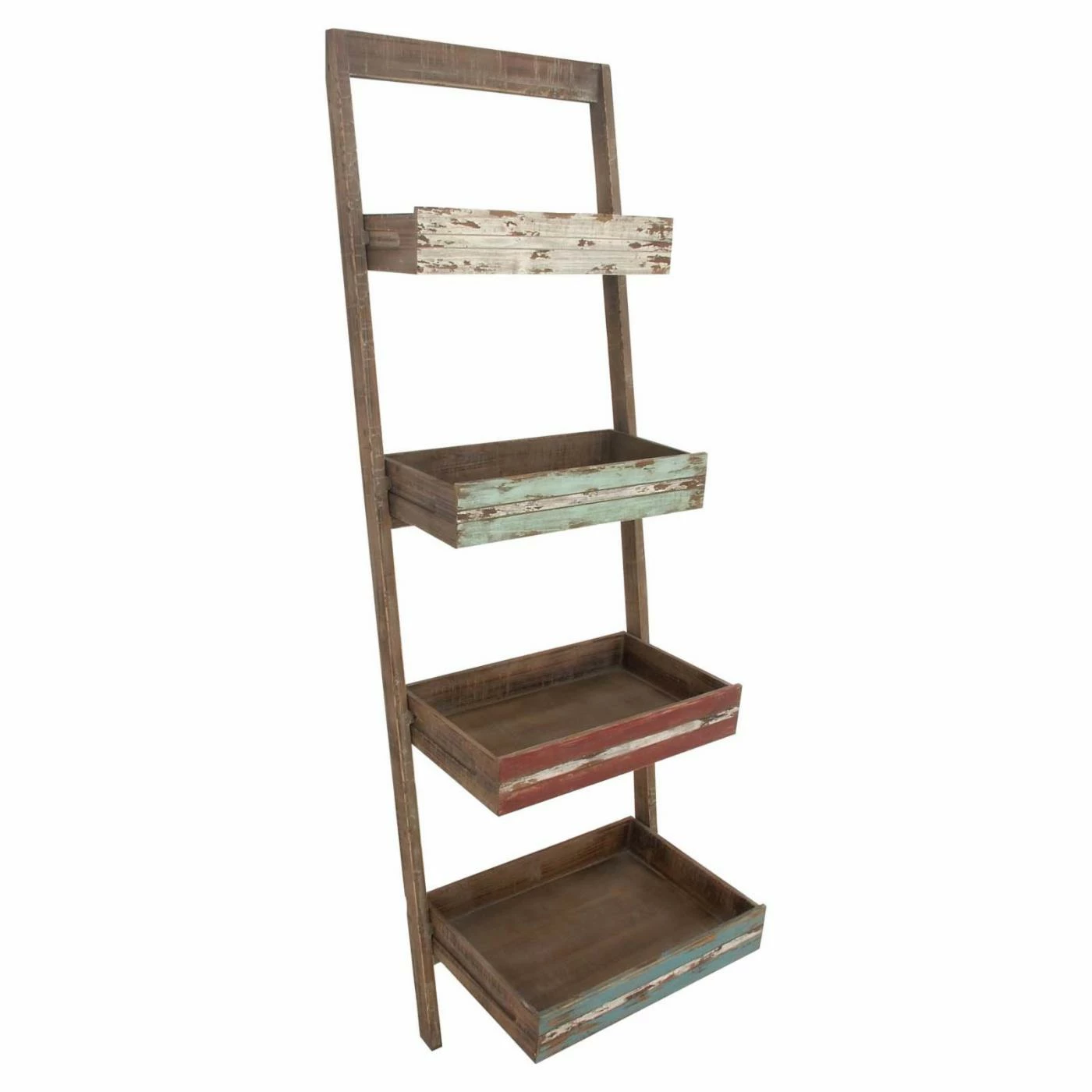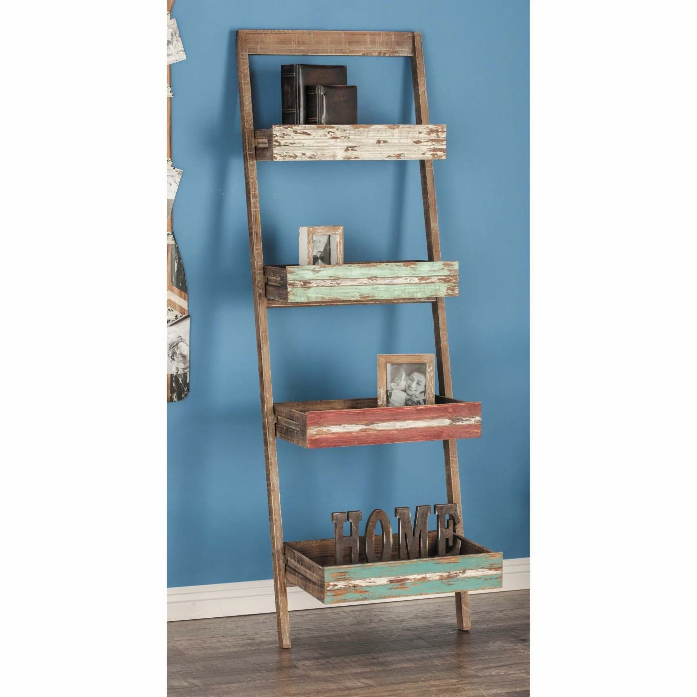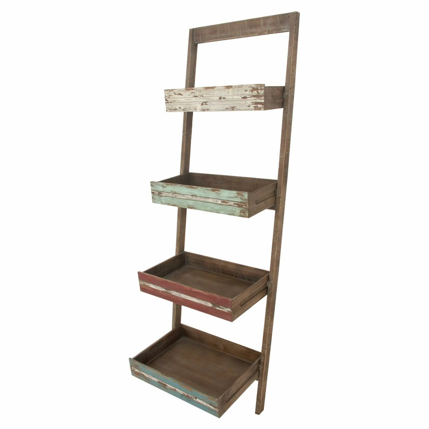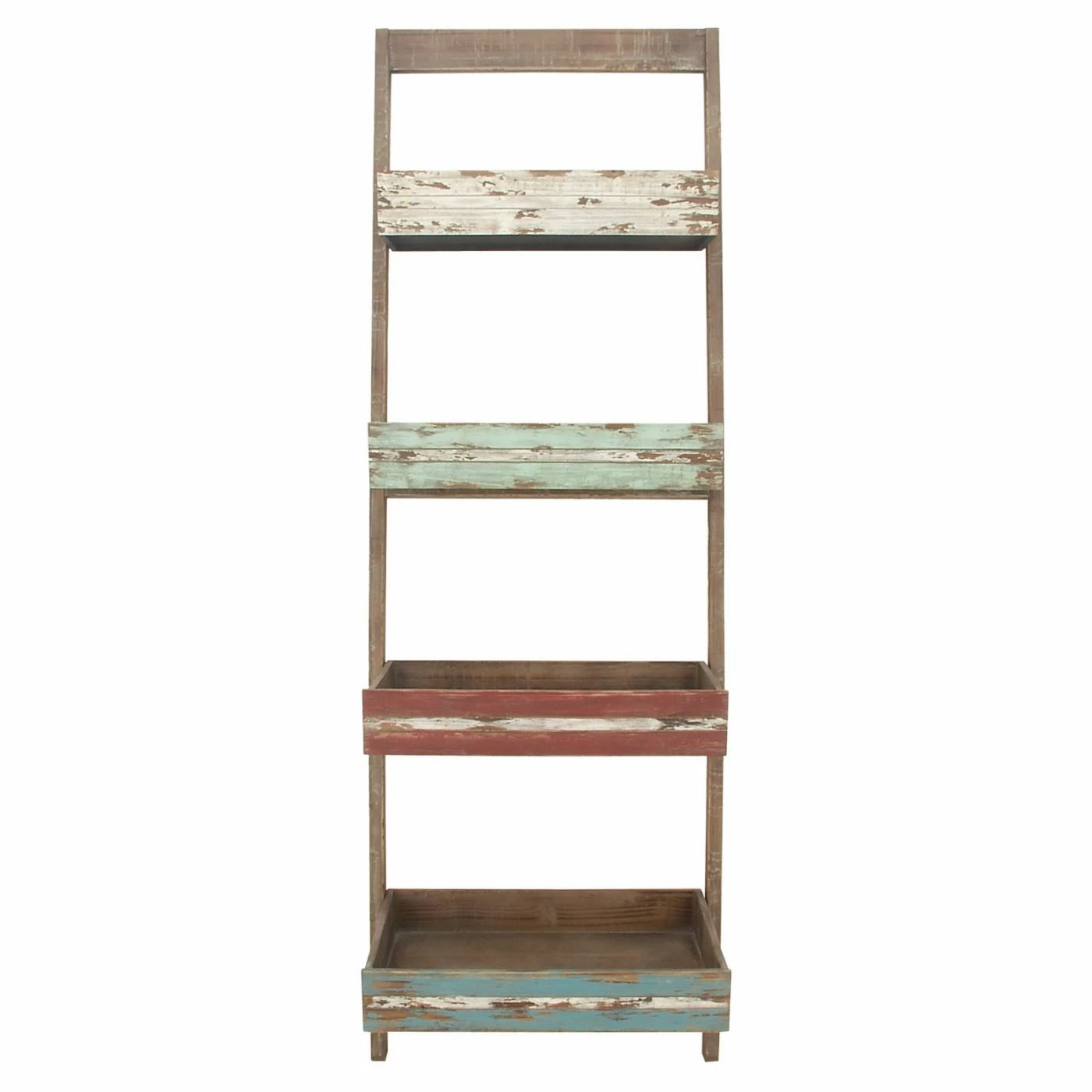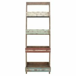 With its heavily weathered finish, the DecMode Farmhouse Leaning Shelf – Brown is ideal for showcasing decorative accents or storing books and media in your farmhouse interior. The storage solution is designed to lean against your wall and includes four deep, bin-style shelves. Constructed out of robust solid fir wood, the shelving unit will stand the test of time in your entryway, living room, bedroom, or dining room.