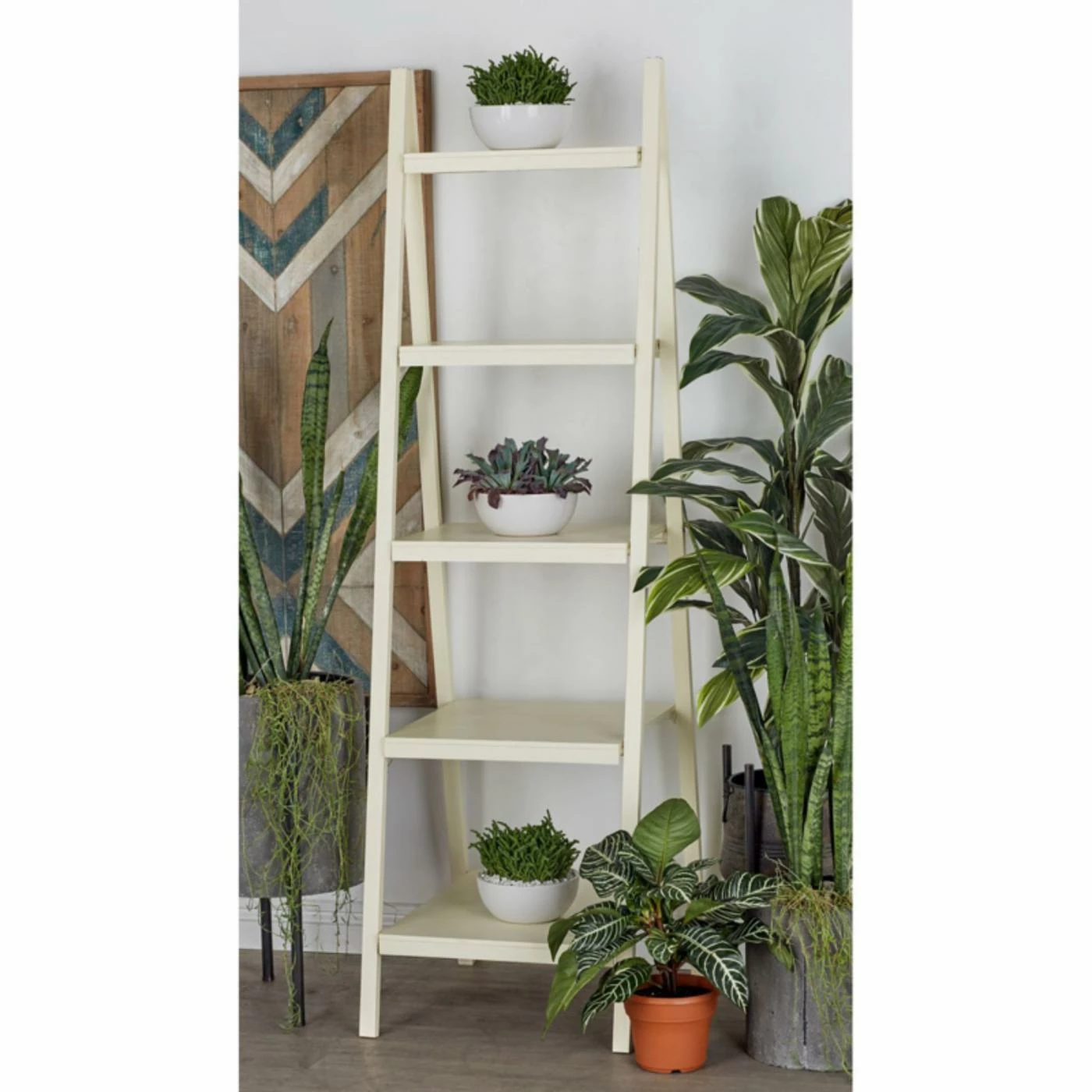 The DecMode Wood Leaning Shelf – 21W x 65H in. is simple, beautiful, and functional. Constructed from pine wood and MDF, this ladder shelf comes in your choice of finish so you can create the ideal look for your home. Five shelves are perfect for displaying your favorite collectibles, books, plants, and more. A lovely way to add more storage space to any room, this leaning shelf complements a wide variety of decors.