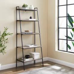 Update your living area, bedroom, or home office look with the Manor Park Urban Industrial Ladder Bookcase. A painted metal frame supports five engineered wood shelves. The open frame and open back design keep this piece light while offering plenty of room for plants, books, and decor. Choose from available finishes to complete your room with this urban-industrial shelf.