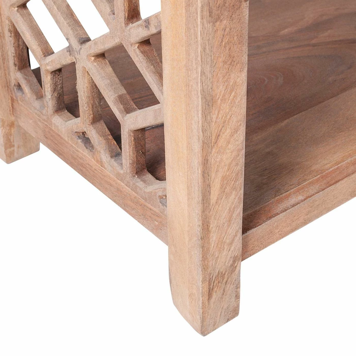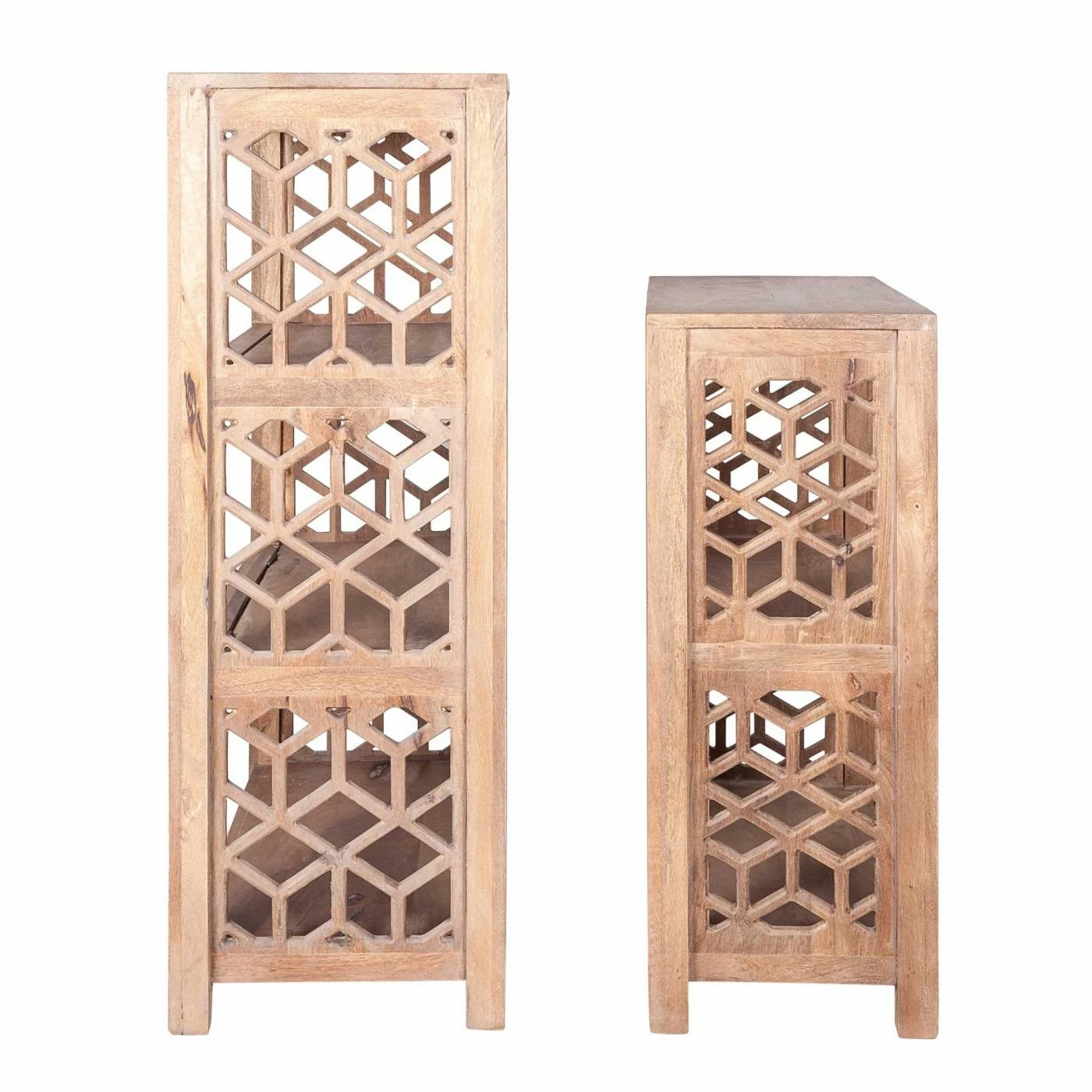 These shelves are ideal for organizing a small space. Both shelves feature a geometric cut-out design, the larger unit has 3 shelves and the small unit has 2. Use these shelves together or in separate rooms, each would be a fantastic addition to a living room, bedroom, office, or even a bathroom.