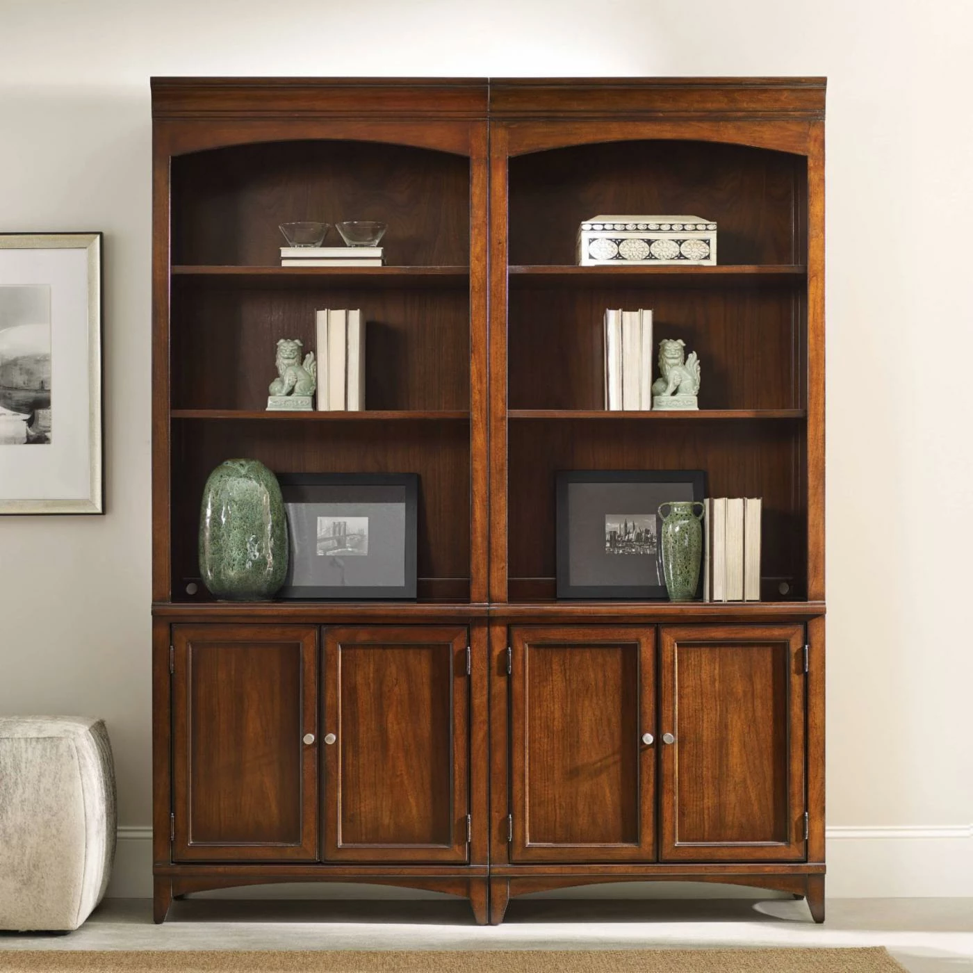 Beautifully designed with clean lines and a classic look, the Hooker Furniture Latitude Bunching Bookcase creates a look of understated elegance that you’ll love. Crafted from hardwood solids and walnut veneers that won’t contract with the heat and cold, this bookcase has a gorgeous handcrafted finish with unsurpassed clarity, color, and durability to give you a truly exquisite piece. Two adjustable shelves are perfect for displaying your favorite artistic pieces while the adjustable shelf behind the doors provides storage space for books, office supplies, and other items. This simple yet elegant bookcase will look gorgeous in any room in your home.