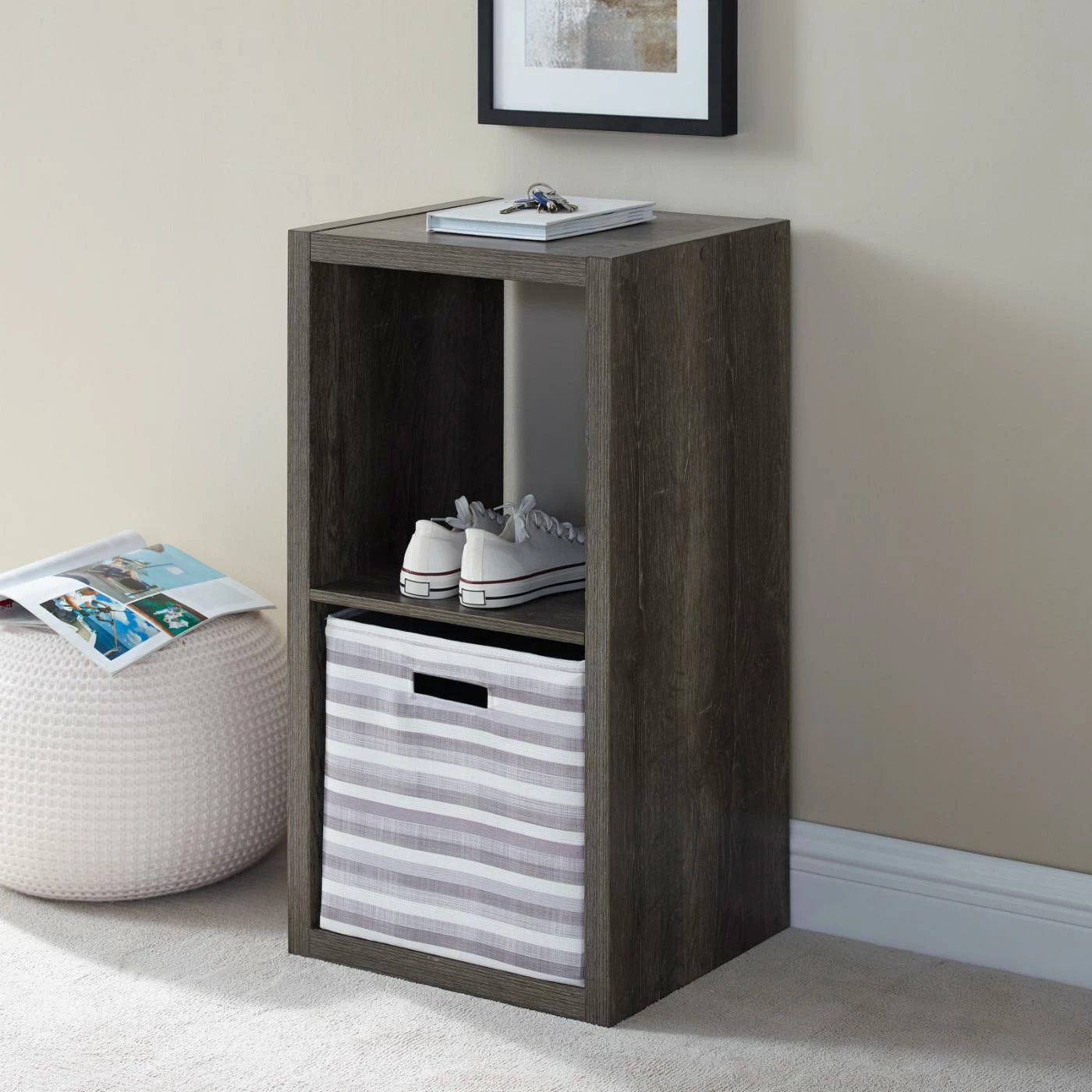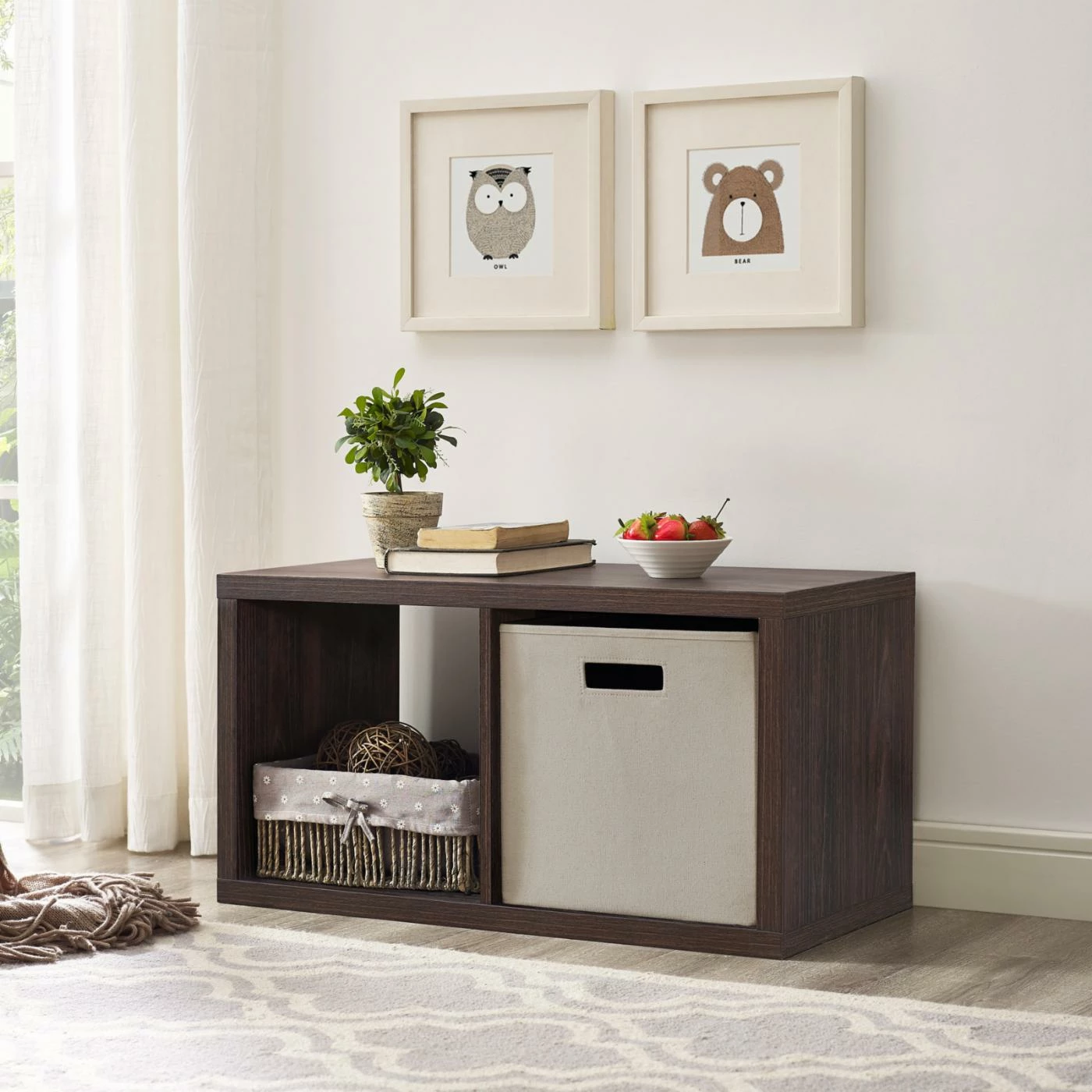 Get organized lickety-split with this perfectly sized Linon Galli 2 Cubby Cube Bookcase. With the ability to be used vertically or horizontally, this piece is sure to fit in any space you need. The elegant espresso finish is sure to complement any dΓ©cor!