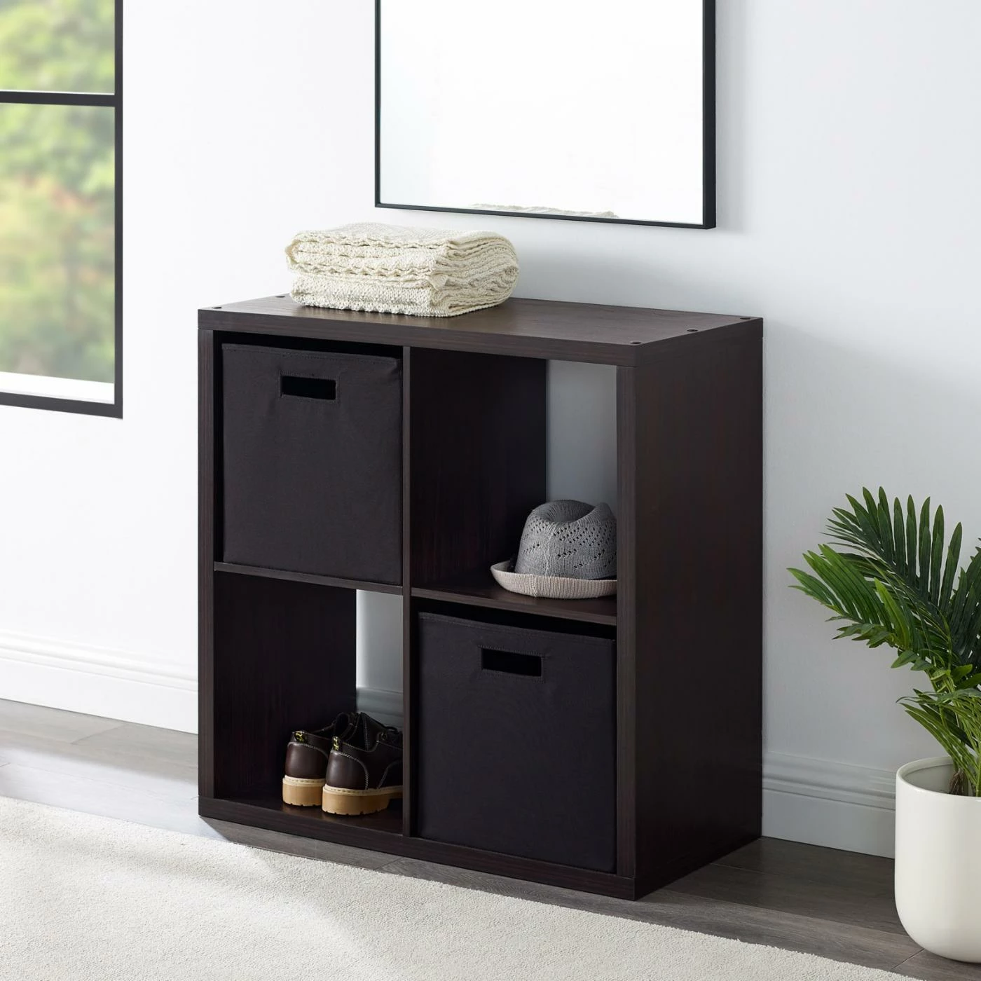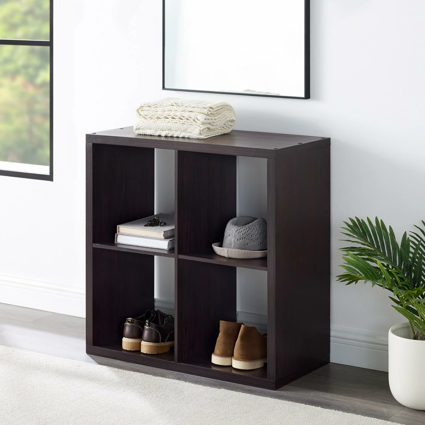 Get organized lickety-split with this perfectly sized Linon Galli 4 Cubby Cube Bookcase. With four ample open cube areas, this piece is sure to fit in any space you need. The elegant espresso finish is sure to complement any décor!