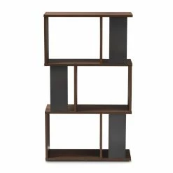 The Baxton Studio Legende Modern and Contemporary Cube Display Bookcase – Brown and Dark Grey wows with its staggered design and rectangular silhouette. The three levels of shelves feature a combination of wide and narrow open compartments. This bookcase boasts engineered wood craftsmanship as well as a rich gray and brown finish.