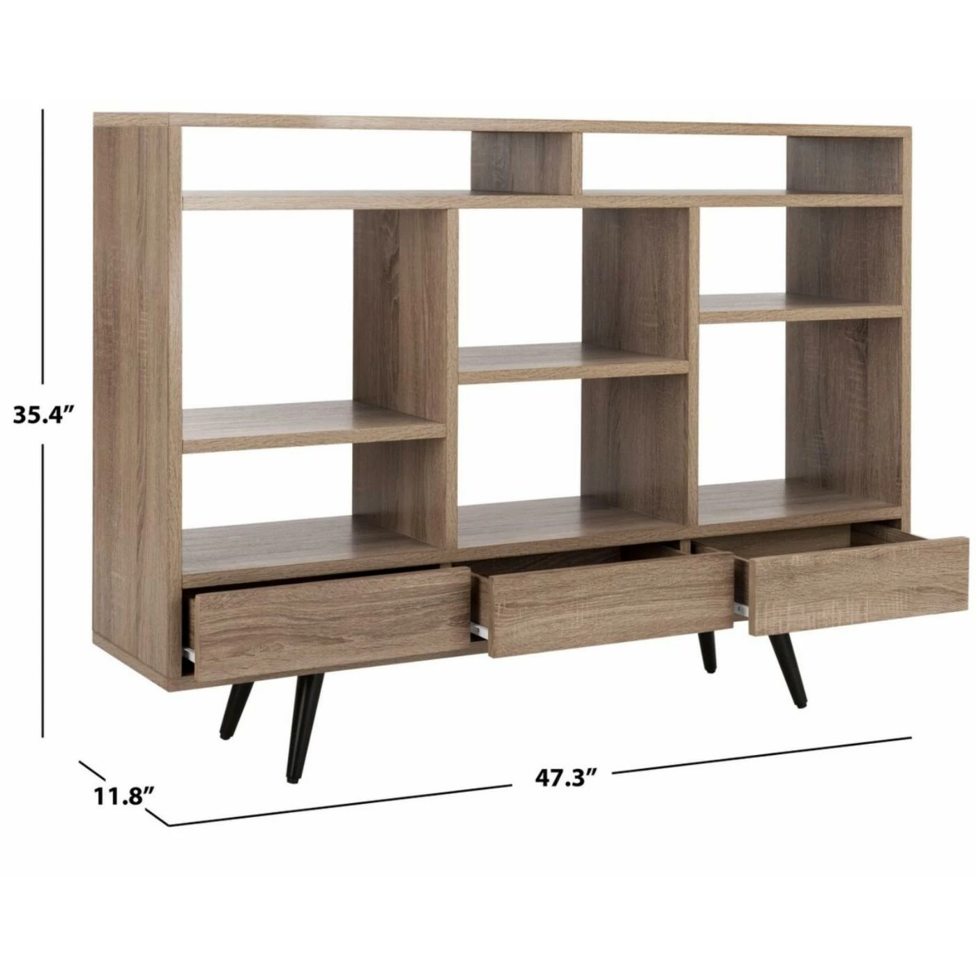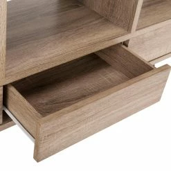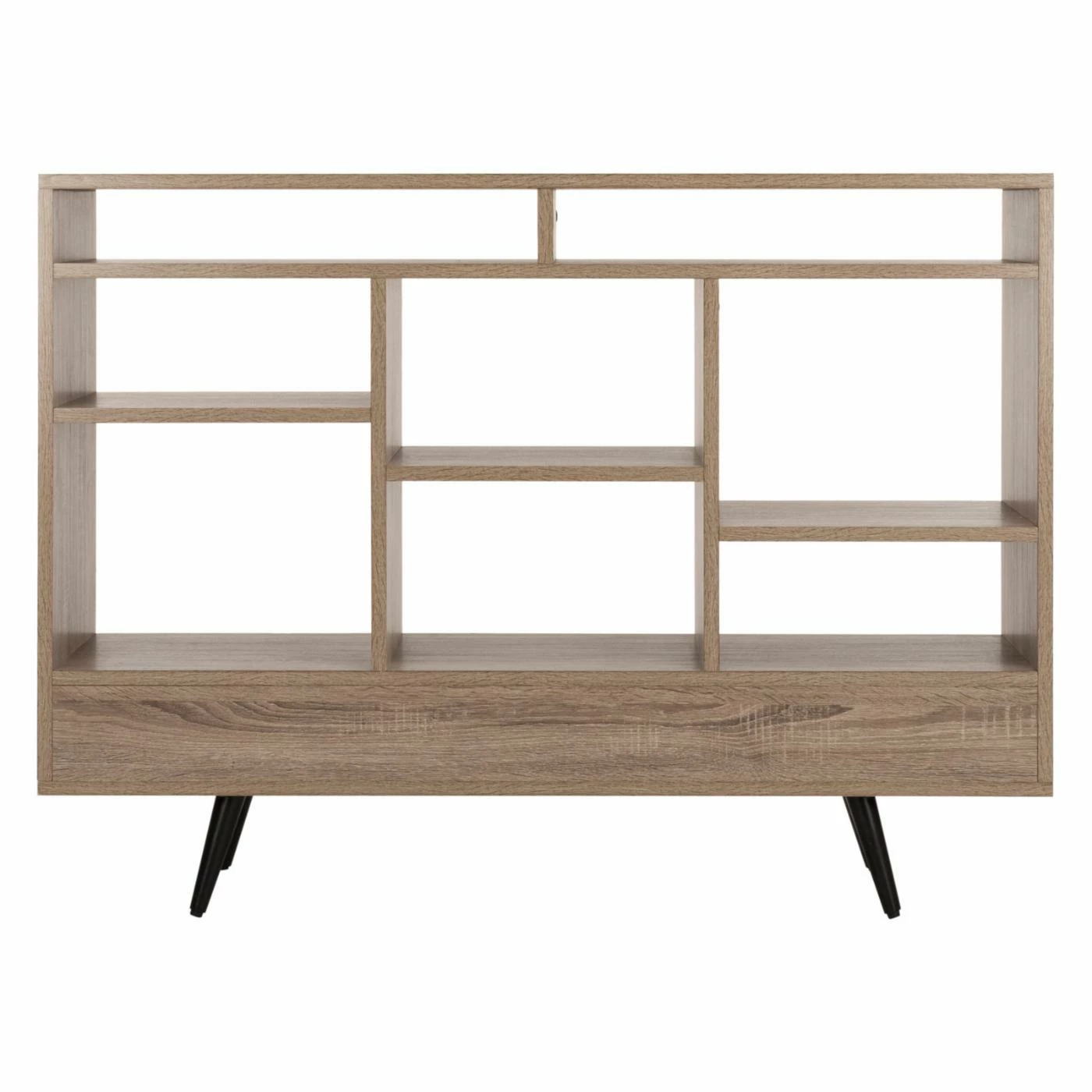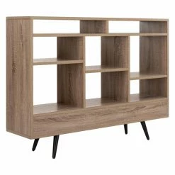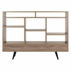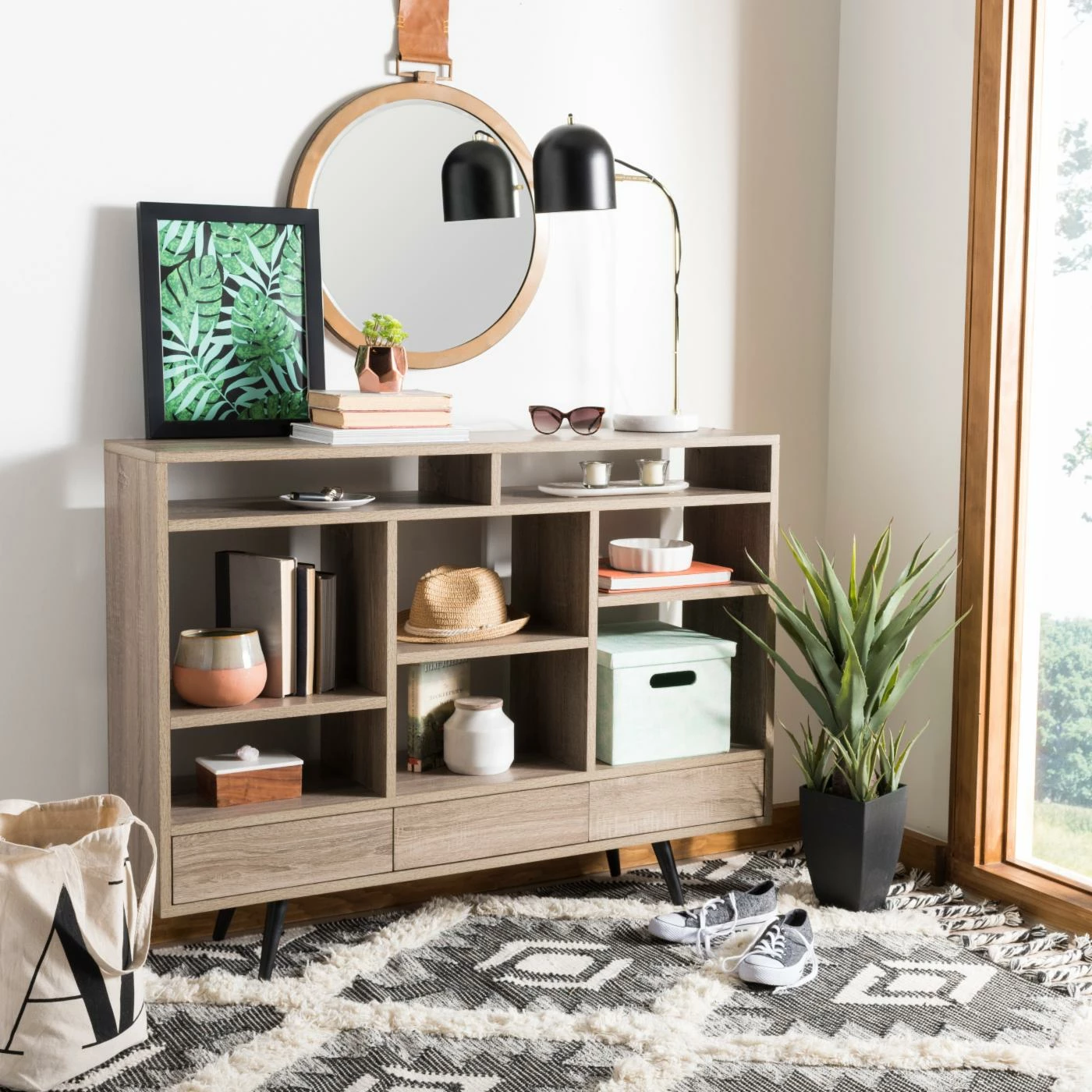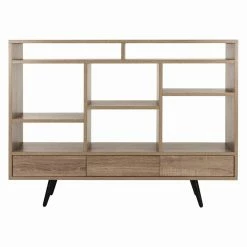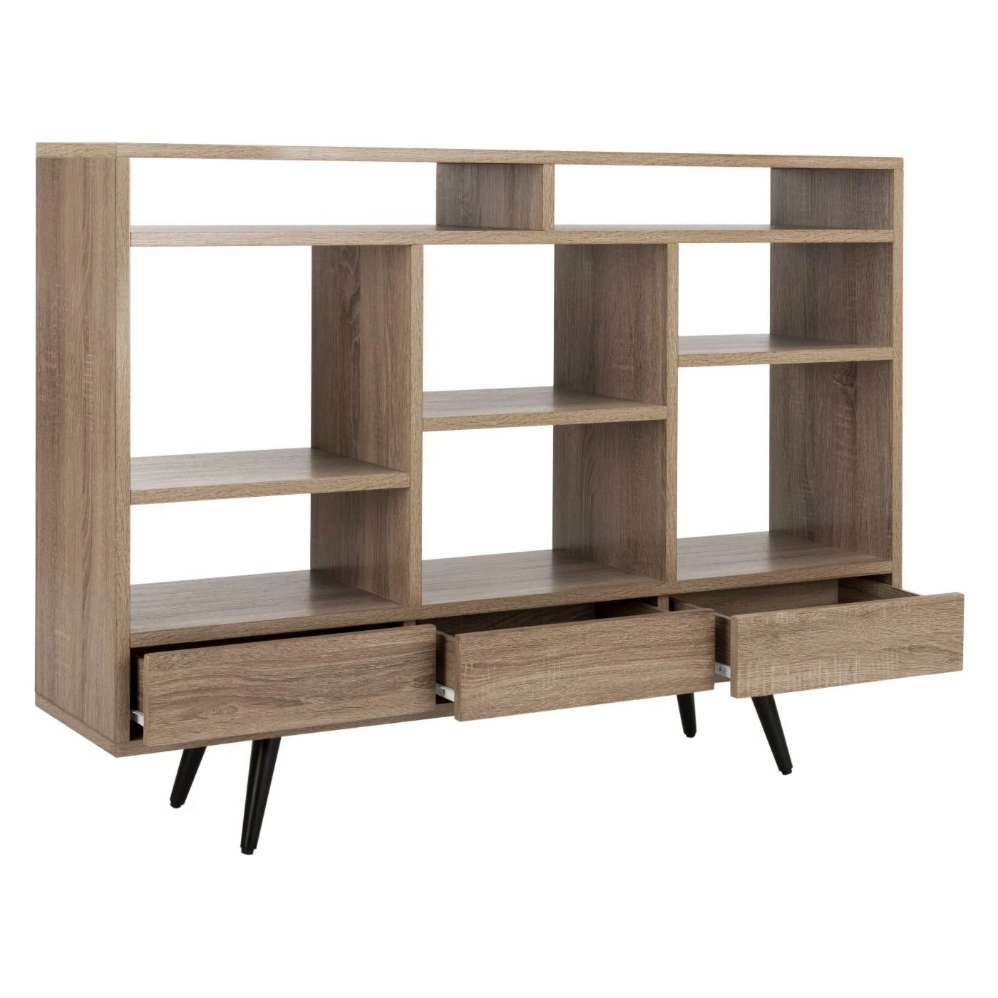 The HN Home Pretzinger Mid-Century Modern Retro Wood Etagere boasts a distinctly modern yet extremely versatile design. It features a clean rectangular shape with cubbies that vary in shape and size. At the bottom, there are three hardware-free drawers that keep in tune with this etagere’s clean profile. Plus, it’s supported by black sputnik legs, underscoring it mid-century-inspired style.