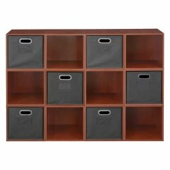 Introduce some plentiful storage into your home or office with the Niche Cubo Storage Set – 12 Cubes and 6 Canvas Bins. Twelve cubic shelf units are included in this set, allowing you to stack them into a single vertical or horizontal bookcase or a number of separate units. You can even add more cubes as your storage needs increase. The frames are rendered from sturdy engineered wood. Included with the set are six storage bins, sized to fit neatly inside the cubes for concealed storage. The bins are built from rigid canvas fabric with metal-rimmed handles. Select among the available colors.