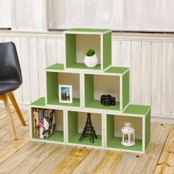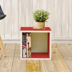 As a simple cube, the Way Basics Design A Cube Bookcase offers limitless possibilities. On its own it can hold just about anything from books to toys, but when used with other cubes, your imagination is the only boundary. This eco-friendly modular storage piece can be stacked in multiple ways and is crafted from durable zBoard recycled paperboard, making it incredibly strong, water resistant, and completely recyclable, not to mention environmentally friendly and free of formaldehyde and VOCs. Assembly couldn’t be easier as there are no special tools or screws required; simply peel and stick the special 3M Brand adhesive strips and fit the pieces together. Includes one double sided backer board required for assembly, which you can flip to show matching wood grain or classic white. Choose from a variety of traditional and bright color options, too. Note: Cubes are sold separately. The main image shows six individual cubes.