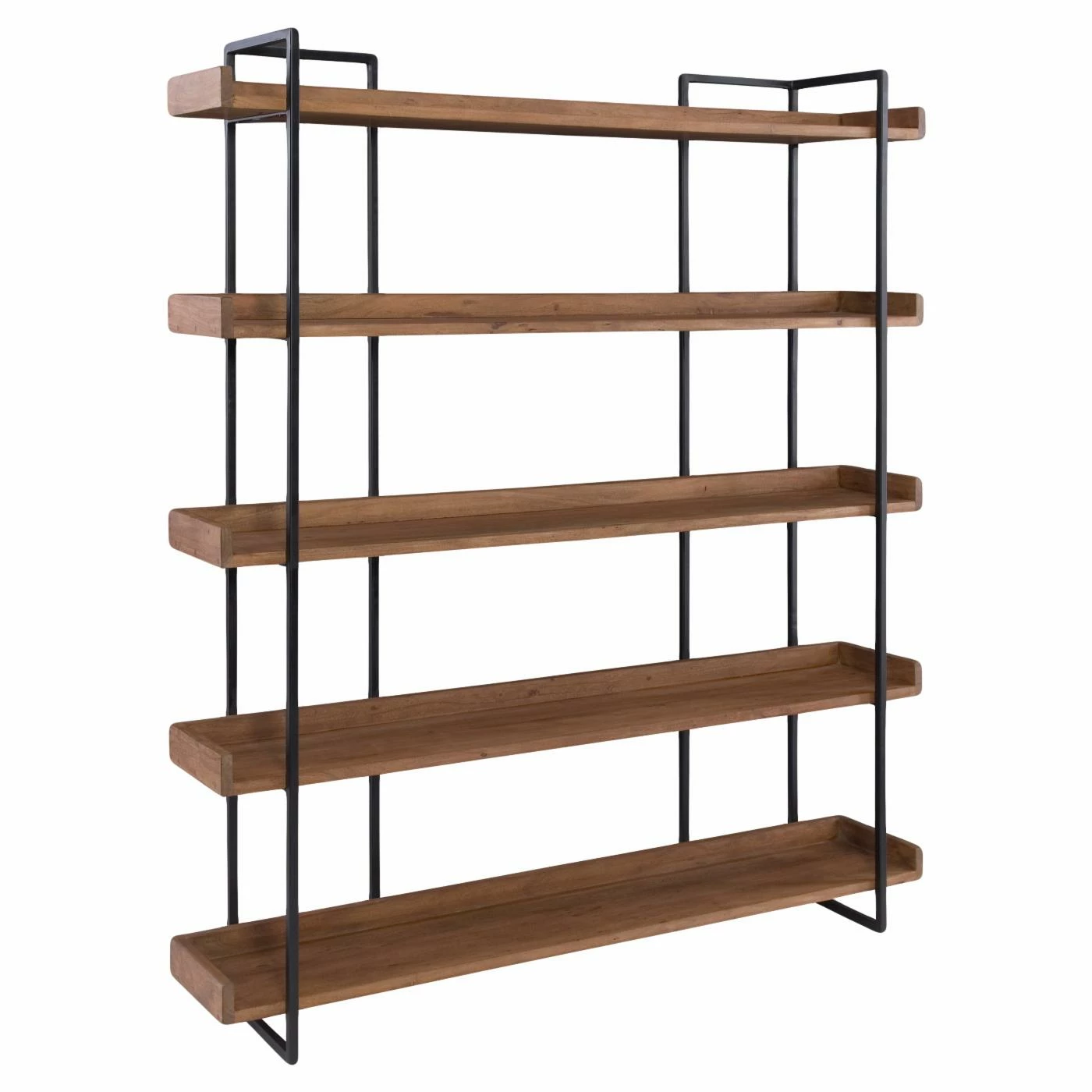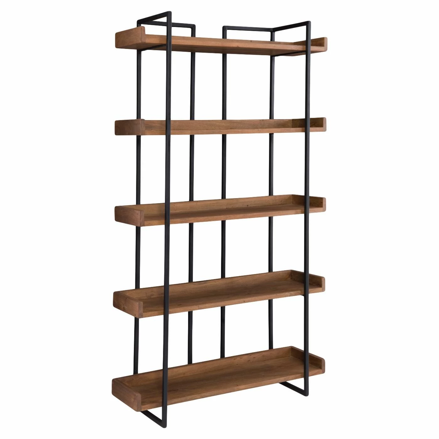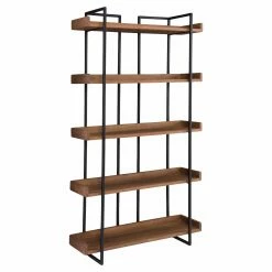 The Moes Home Collection Vancouver Decorative Bookcase gives any room an industrial flair youβll love. Beautifully designed, this durable bookcase is constructed from solid acacia wood with iron frame. The dark gray finish on the metal complements the warm brown finish, creating an elegant, contrasting style youβll love. Five shelves offers ample space for books, decorative items, pictures, and more. A gorgeous addition to your home, youβll love the simple yet stunning style of this bookcase.
