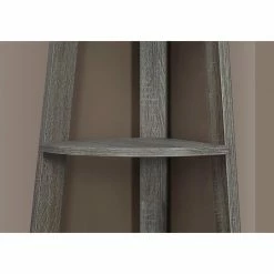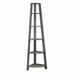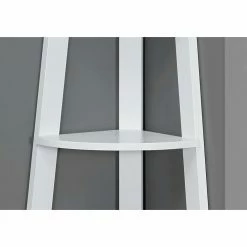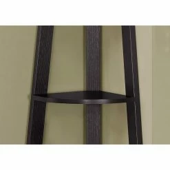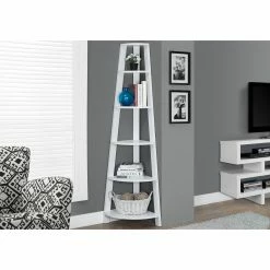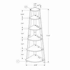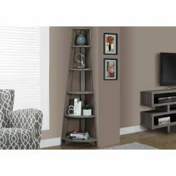 Nestle the Monarch 72 in. Corner Accent Etagere into the corner of any room to add a little bit of life and personal flair. This handsome etagere is constructed with durable particle board and engineered wood and is available in your choice of finish. It snuggles perfectly into the corner of any room, and has five tray-style shelves with rounded edges that are perfect for displaying favorite family heirlooms, decorative items, framed photos, and more. This is the perfect piece for those who dream of built-in storage—it adds a simple space to display your most cherished items without sacrificing style.