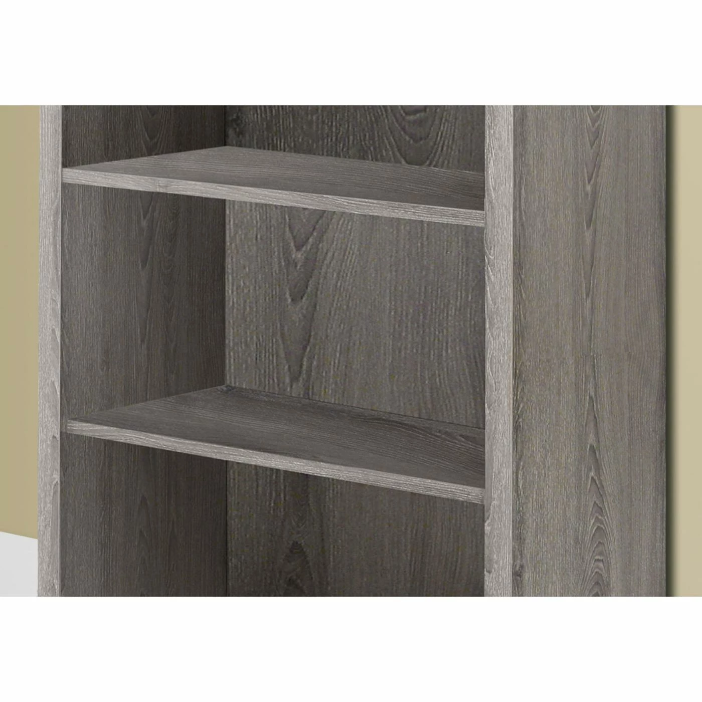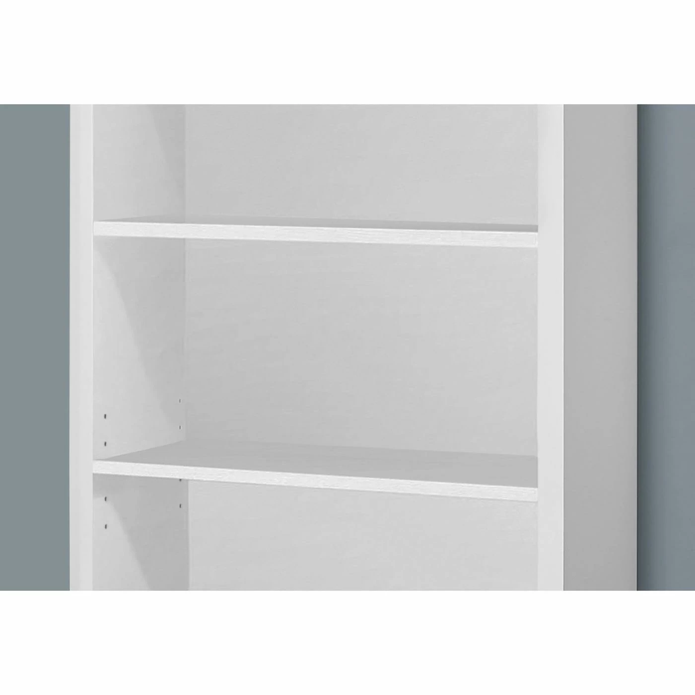 Display your books and favorite home decor in contemporary style with the Monarch 48 in. Bookcase with Adjustable Shelves. This sleek bookshelf with thick panels is constructed with durable particle board and laminate in your choice of finish. The three center adjustable shelves allow you to display books, vases, picture frames, and more at varying heights to fit all your favorite treasures. Itβs a beautiful addition to your living room, office, or any space in your home that needs a lovely storage solution and a touch of modern style.