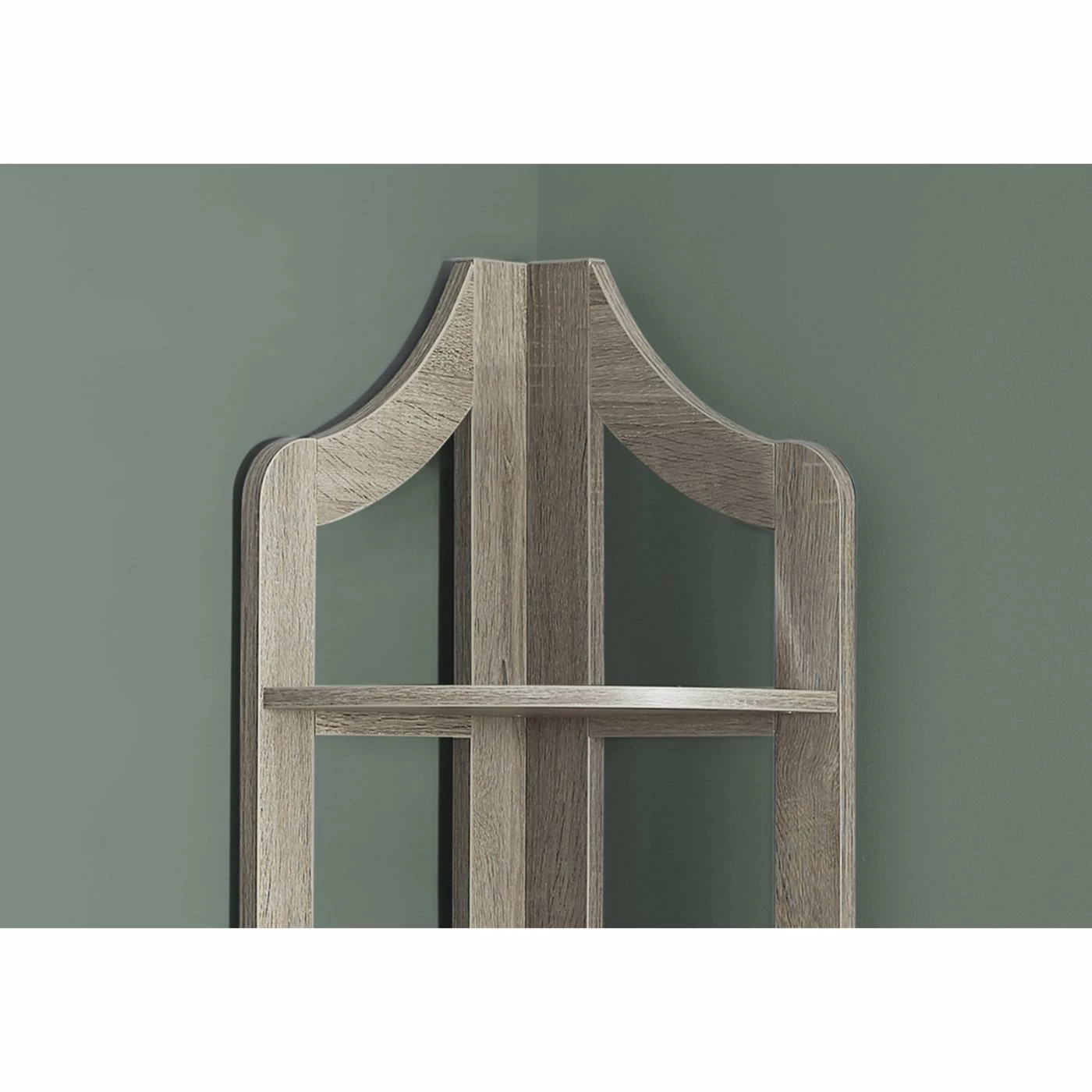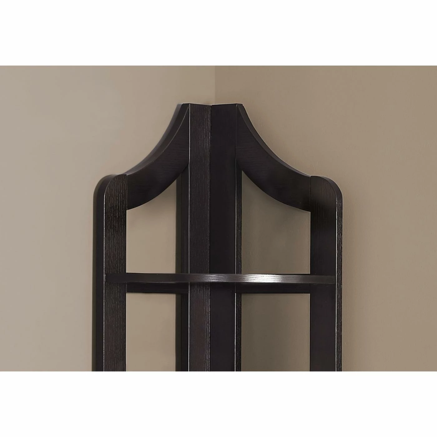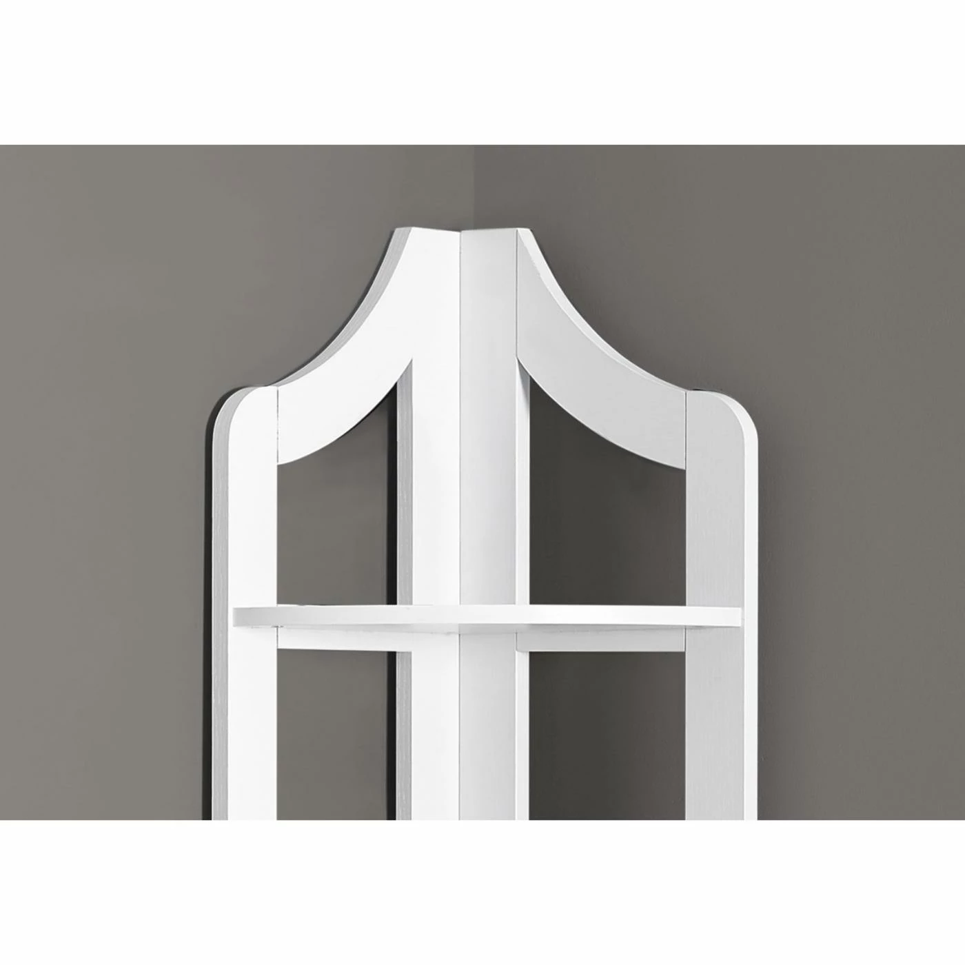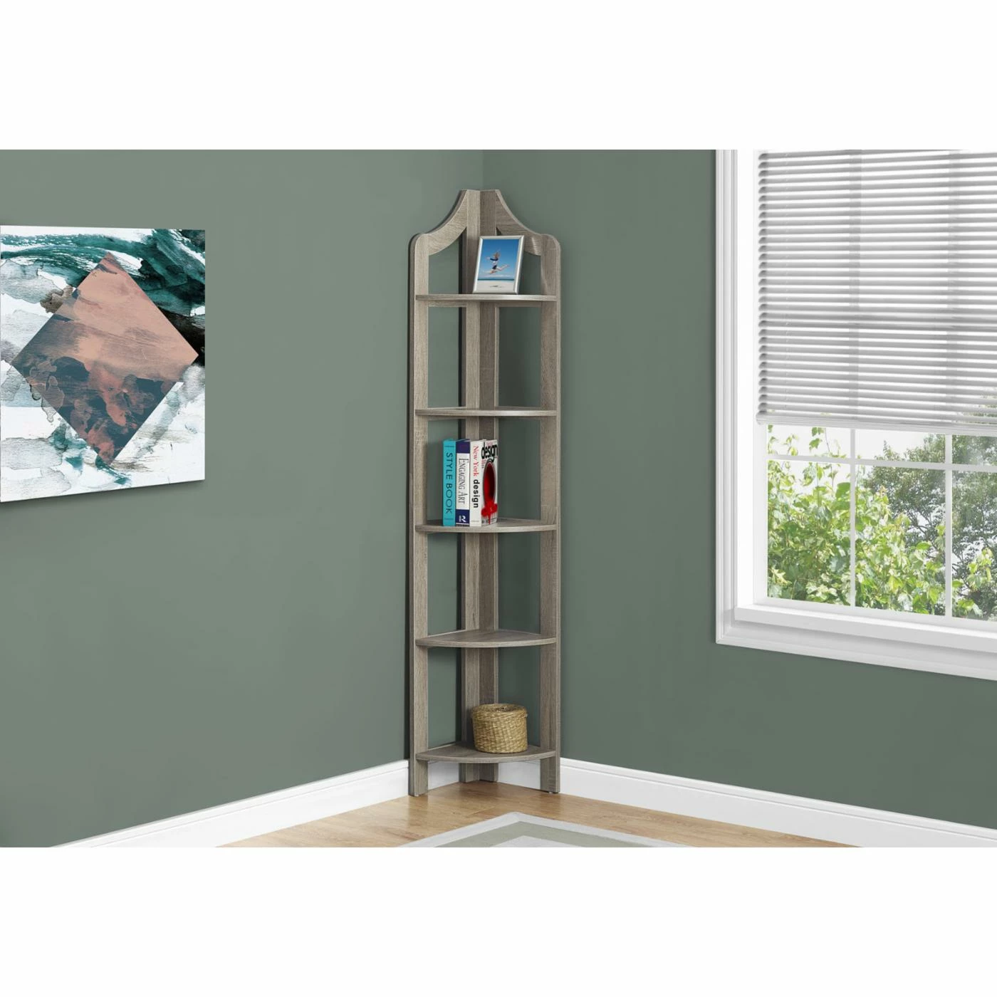 Fill that empty corner space in your hallway, living room, or bedroom with the elegant Monarch Specialties Transitional Corner Bookcase. Offering plenty of storage space with 5 fixed wedge style shelves to place books, pictures, plants, or showcase your decorative objects. The transitional design of this eager is suitable for any dΓ©cor and the compact size makes it ideal for small spaces without sacrificing style. Tipping hardware is included to affix to a wall for further stability. Assembly is required.
