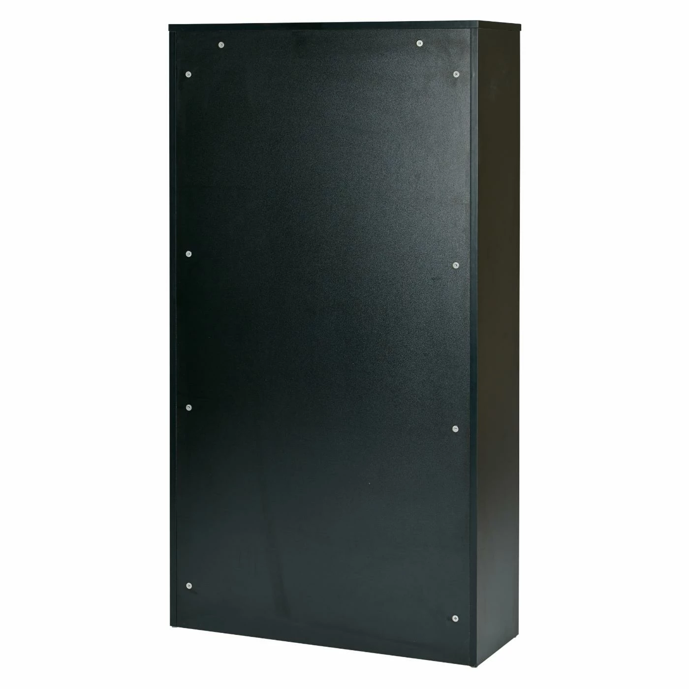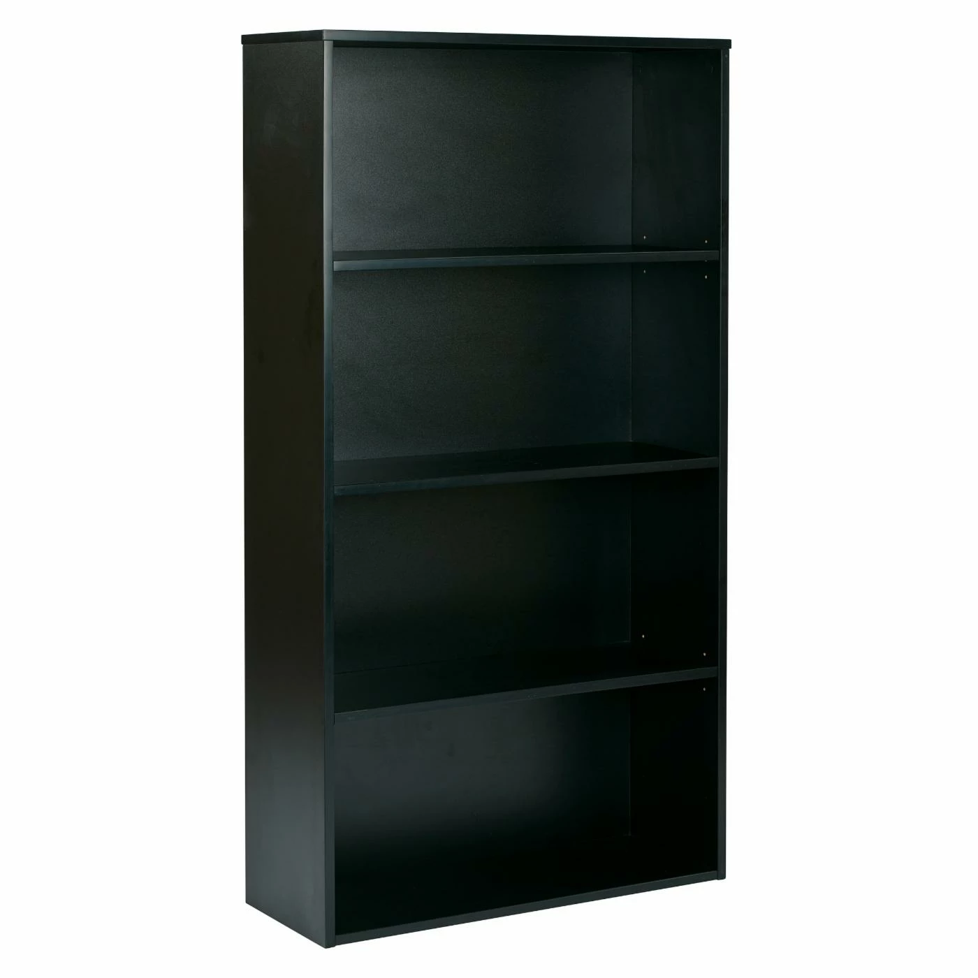 The sleek and simple OSP Home Furnishings Prado Standard Bookcase is perfect in any bedroom or living space. It boasts sturdy laminate and metal craftsmanship for lasting use. Your choice of available size configuration offers ample space to store and display items. A black finish completes this modern bookcase.