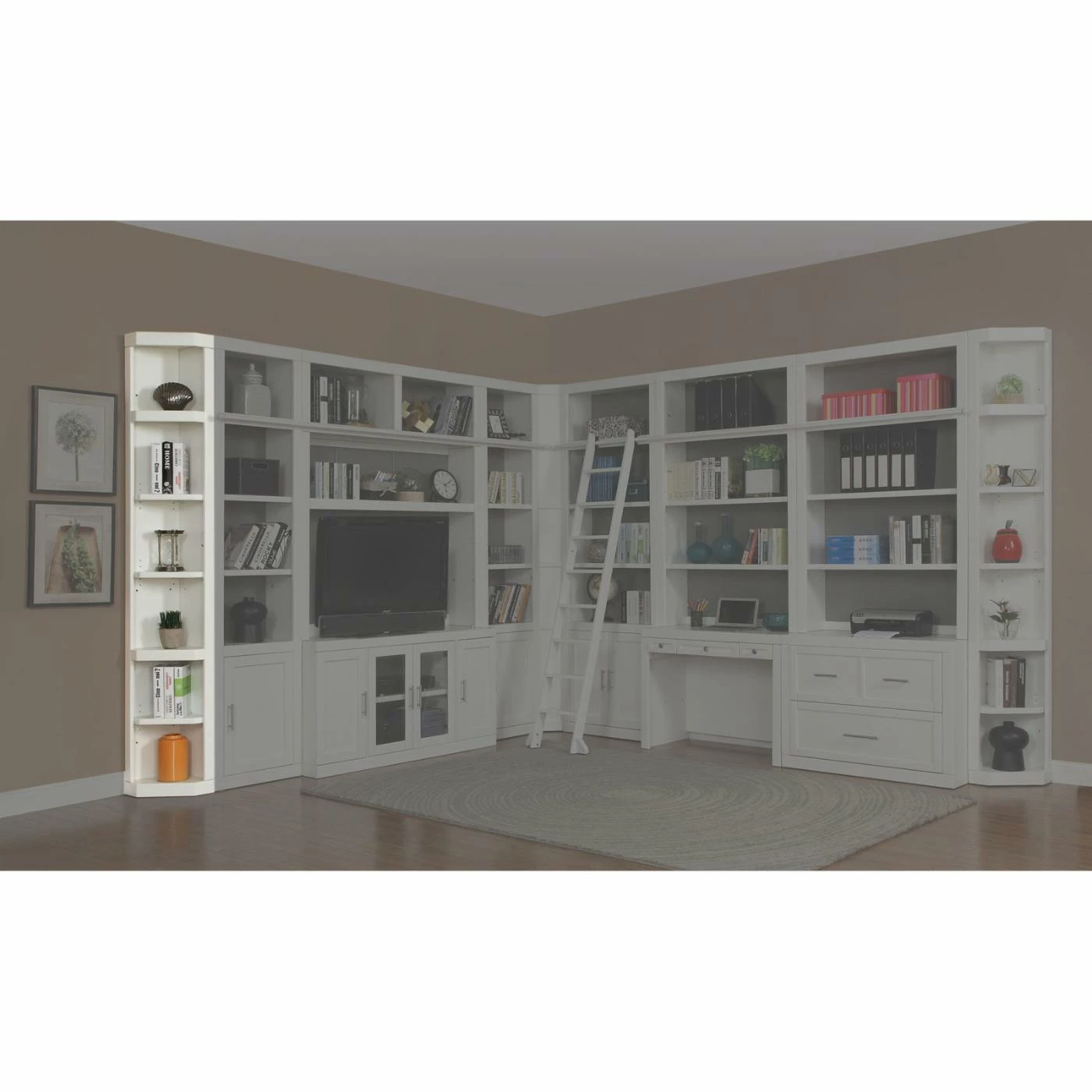 The handy Parker House Catalina Outside Corner Bookcase adds multiple levels of display without taking up much floor space. Tuck this cottage white bookcase into a corner or add to the Catalina collection’s library wall or entertainment center. It offers fixed and adjustable shelving for customized display.