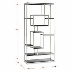 If you decided that you wanted to enjoy the Picket House Furnishings Harper Decorative Cube Bookshelf – Chrome/Black without putting up a single book, knickknack, or photo, we’d totally understand. This glamorous bookshelf features a frame made from square-tube steel with a polished chrome finish. Ten shelves of different sizes are arranged in an asymmetric pattern that keeps your eye engaged while you enjoy the design. Each shelf is made from engineered wood with a black exterior of wood-like laminate. This shelf is finished on all sides, so you can use it with any side forward or you can let it act as a divider in an open space.