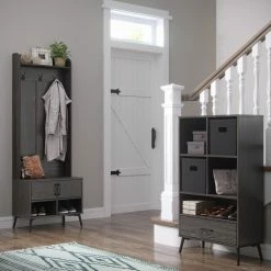 The simple, contemporary design of the RiverRidge Home Woodbury Collection Cube Bookcase will coordinate with any dΓ©cor. This bookcase offers ample room for displaying decorations, storing books, and featuring keepsakes. It includes four square cubbies, a single horizontal cubby, and one drawer. The bookcase is crafted with engineered wood. Dark gray veneers with a natural woodgrain will coordinate with a variety of dΓ©cor. Optional cloth storage bins allow you to tuck away items out of sight. Add storage and display space to any room in your home with this versatile bookcase.