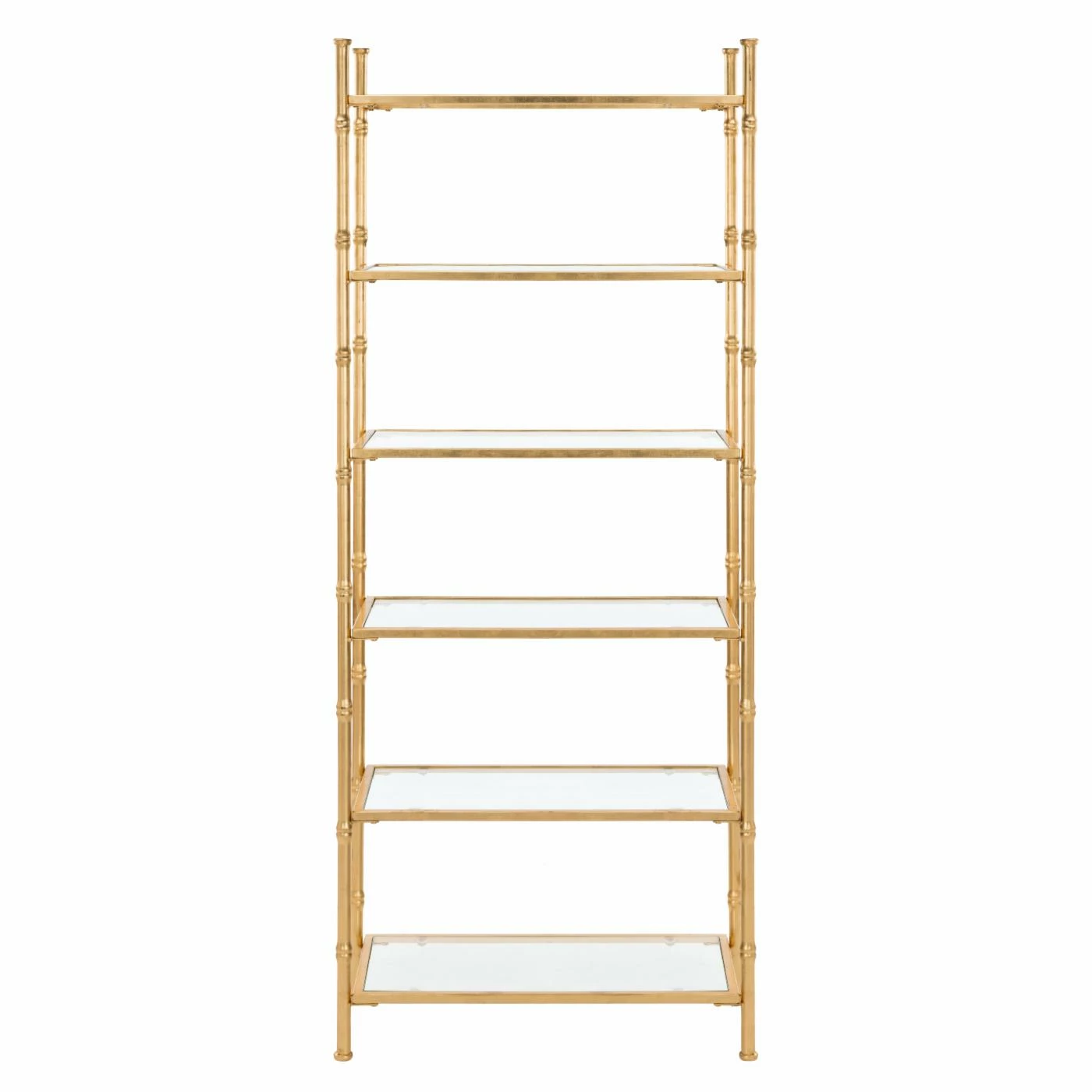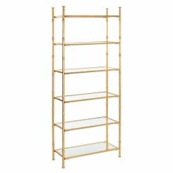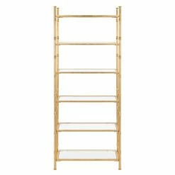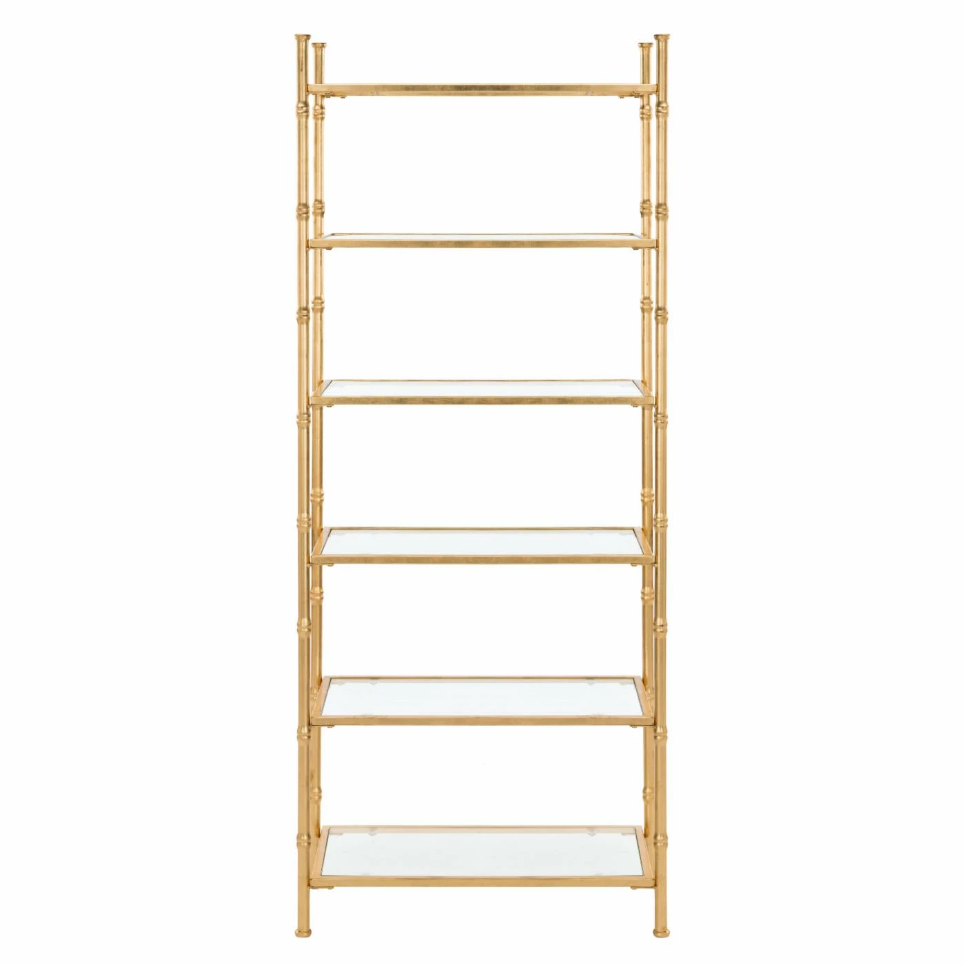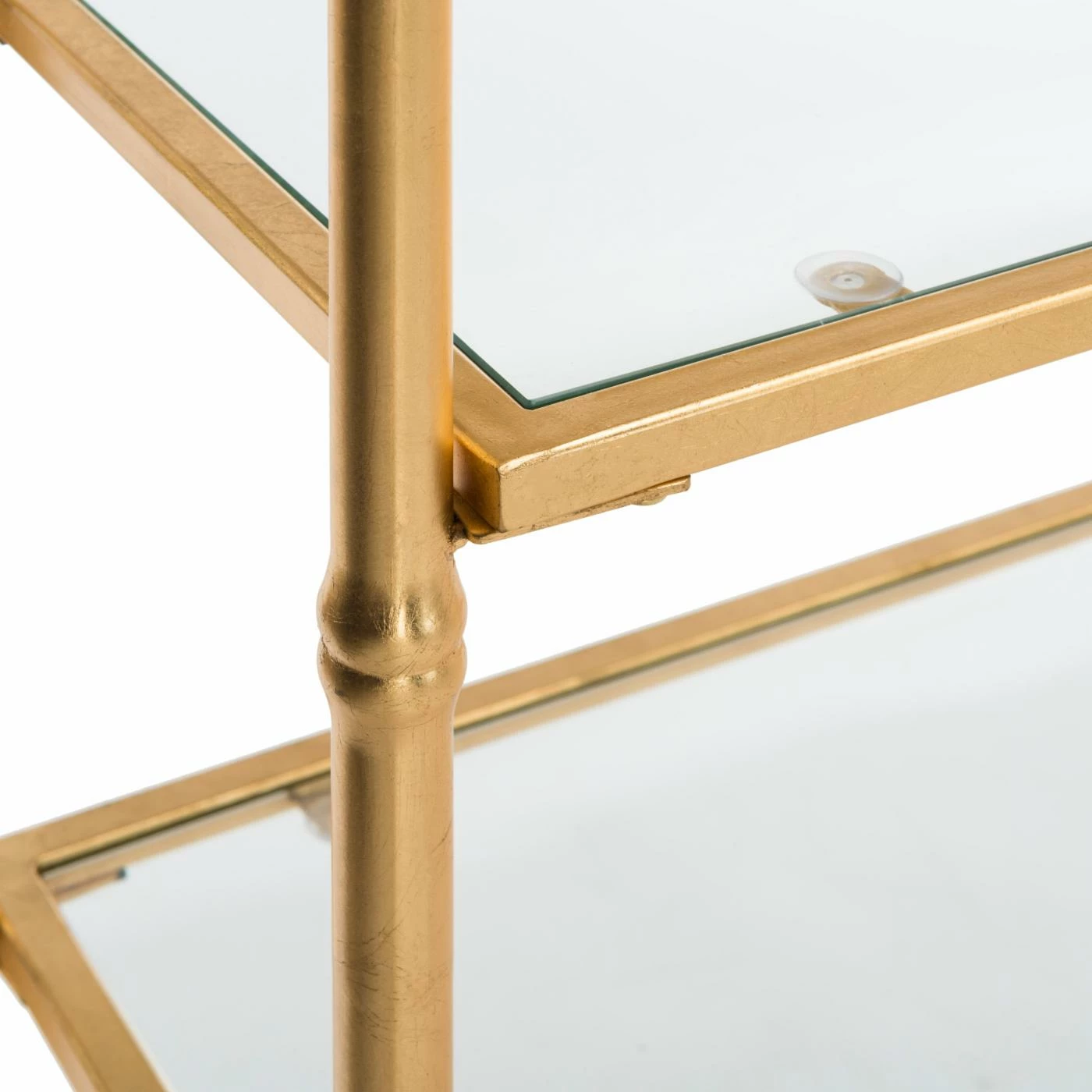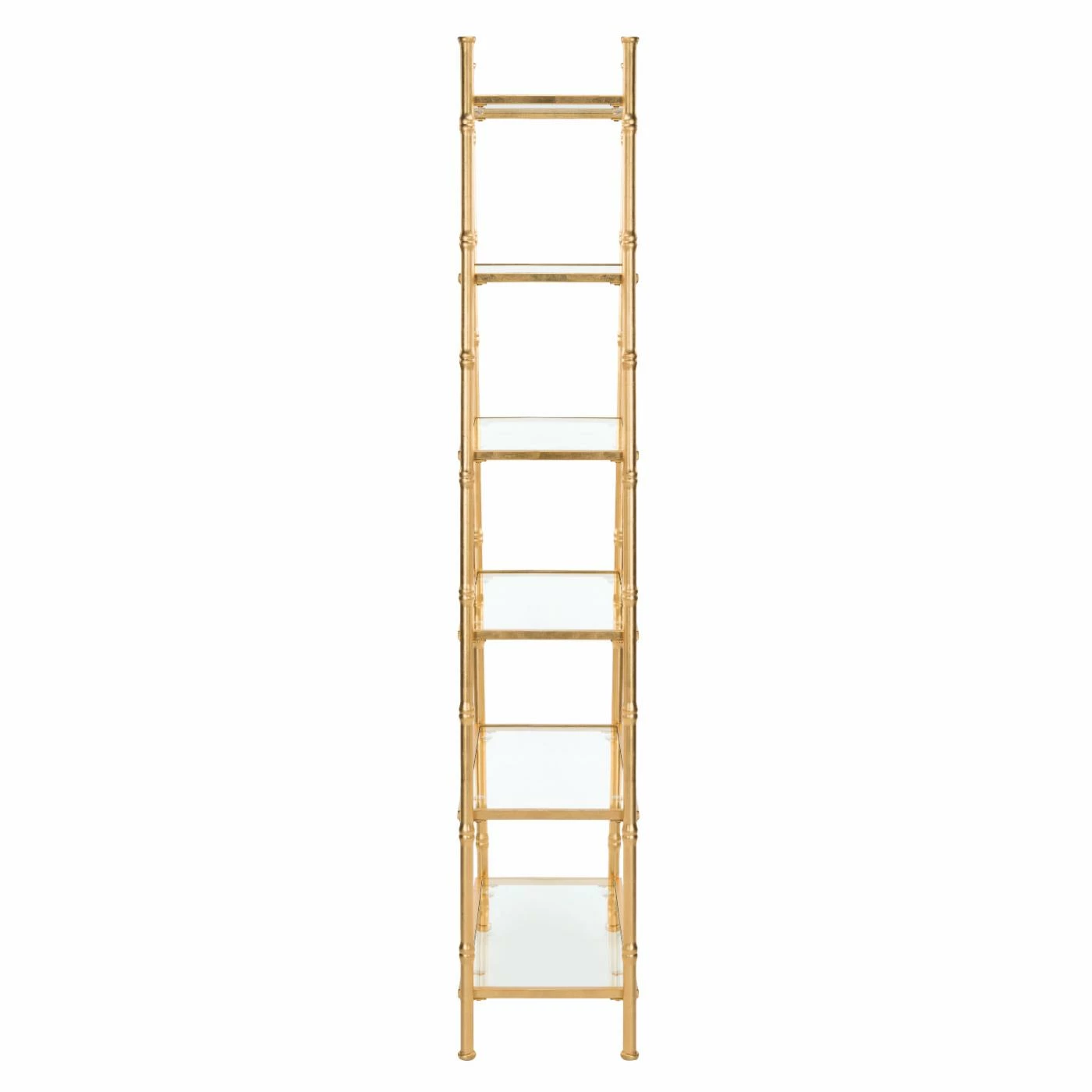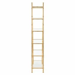 Create a glamorous moment in your living room or dining room by decorating with the Safavieh Arden Etagere – Gold. This tall shelf unit features metal framework and sleek glass shelves. The gold finish of the frame enhances the elegant look of this etagere.