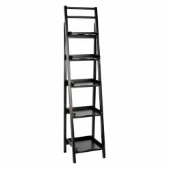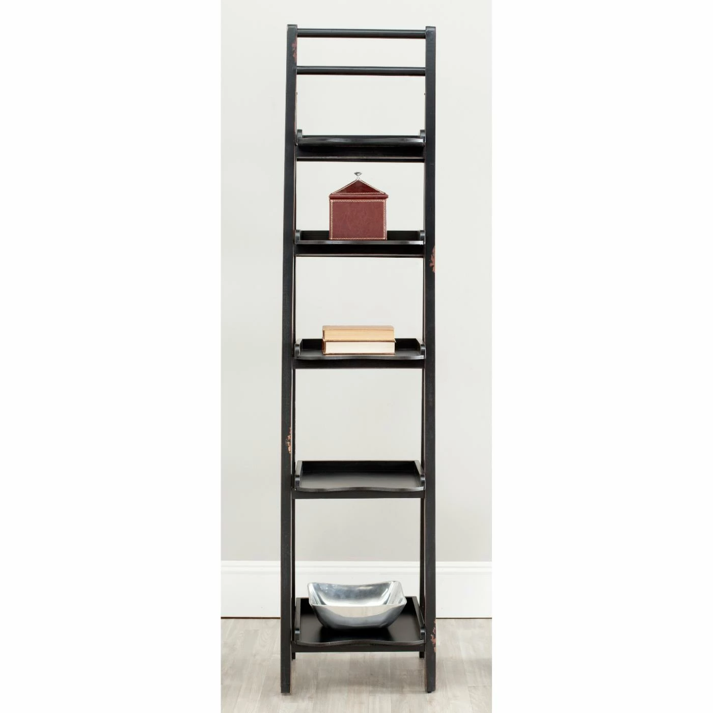 Built from pine and finished in black, the Safavieh Asher Leaning Etagere is a sturdy and easy-to-coordinate addition to any room. This lovely etagere provides five shelves in ascending size from top to bottom, making an interesting style statement in your home. This piece is available in your choice of finish colors to best suit your home decor.