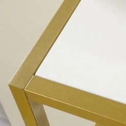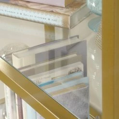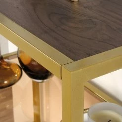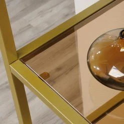 - Made of metal, tempered glass, and wood