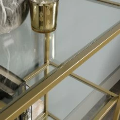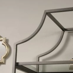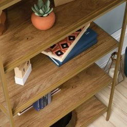 Enjoy the modern glam look of the Sauder International Lux Decorative Bookcase. This 5 shelf tall bookcase features an open back and arched decorative top. The bookcase comes in choice of finish and shelf material.