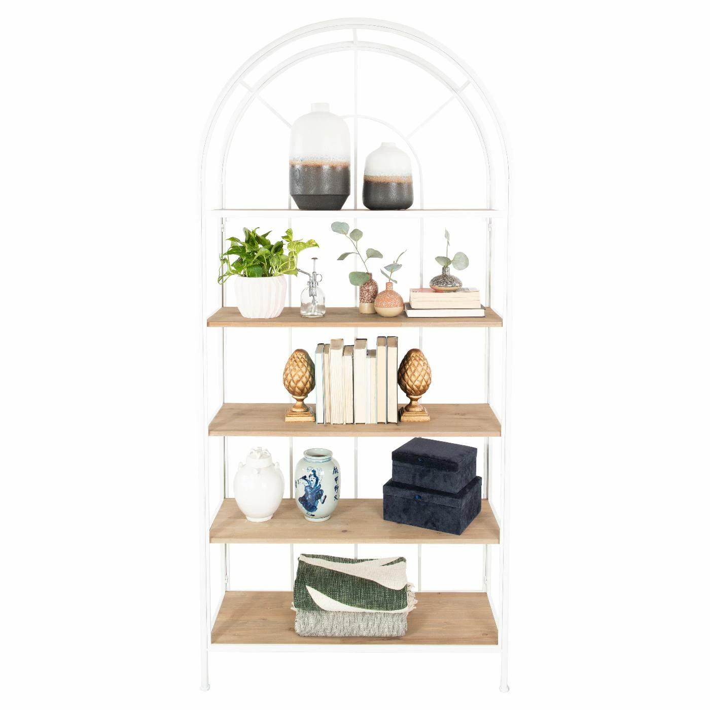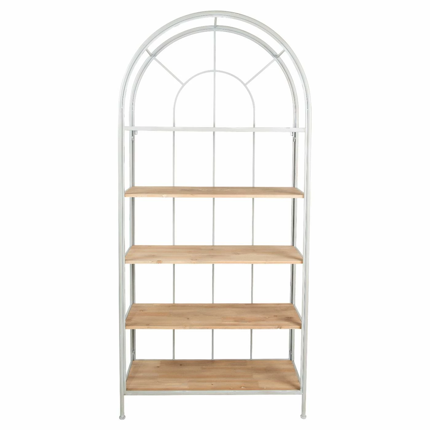 The 3R Studios 5 Shelf Bookcase is a great choice for a charming update for your home storage options. The metal frame features an archway design. Four wooden shelves in a natural finish offer ample space for displaying books, art, houseplants, or whatever else your heart desires. Choose from the available finish options to customize your new bookcase.