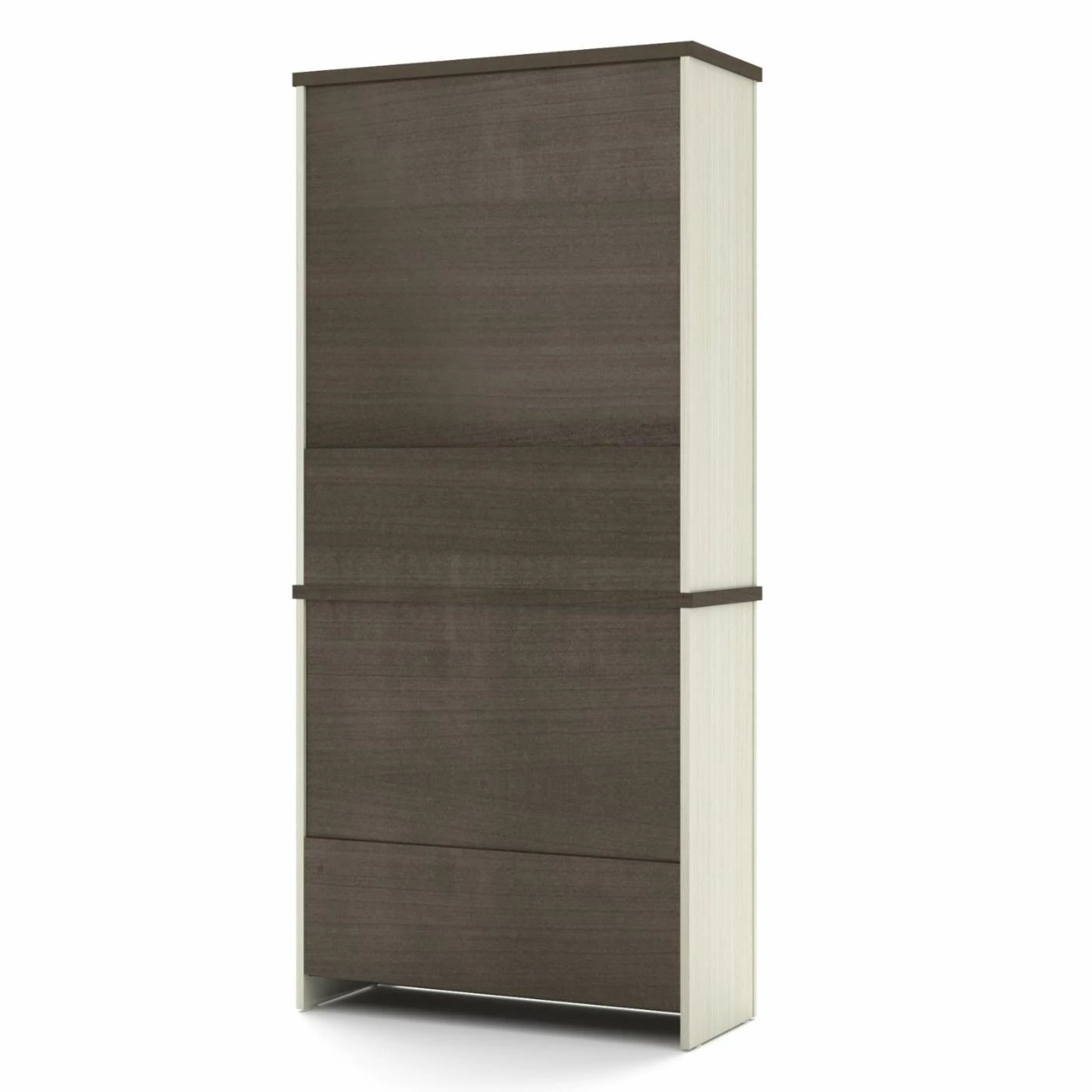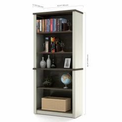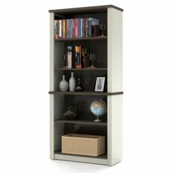 Handy shelving with a chic sensibility, the BESTAR Prestige + Modular Bookcase is an elegant essential for most any room. With wood veneer construction, this bookcase’s two-tone white chocolate and Antigua finish gets a little dressy thanks to classic molded accents throughout. Five shelves, three of which are adjustable, offer ample storage, and the bookcase consists of two pieces stacked one on the other. Meets or exceeds ANSI/BIFMA performance standards.