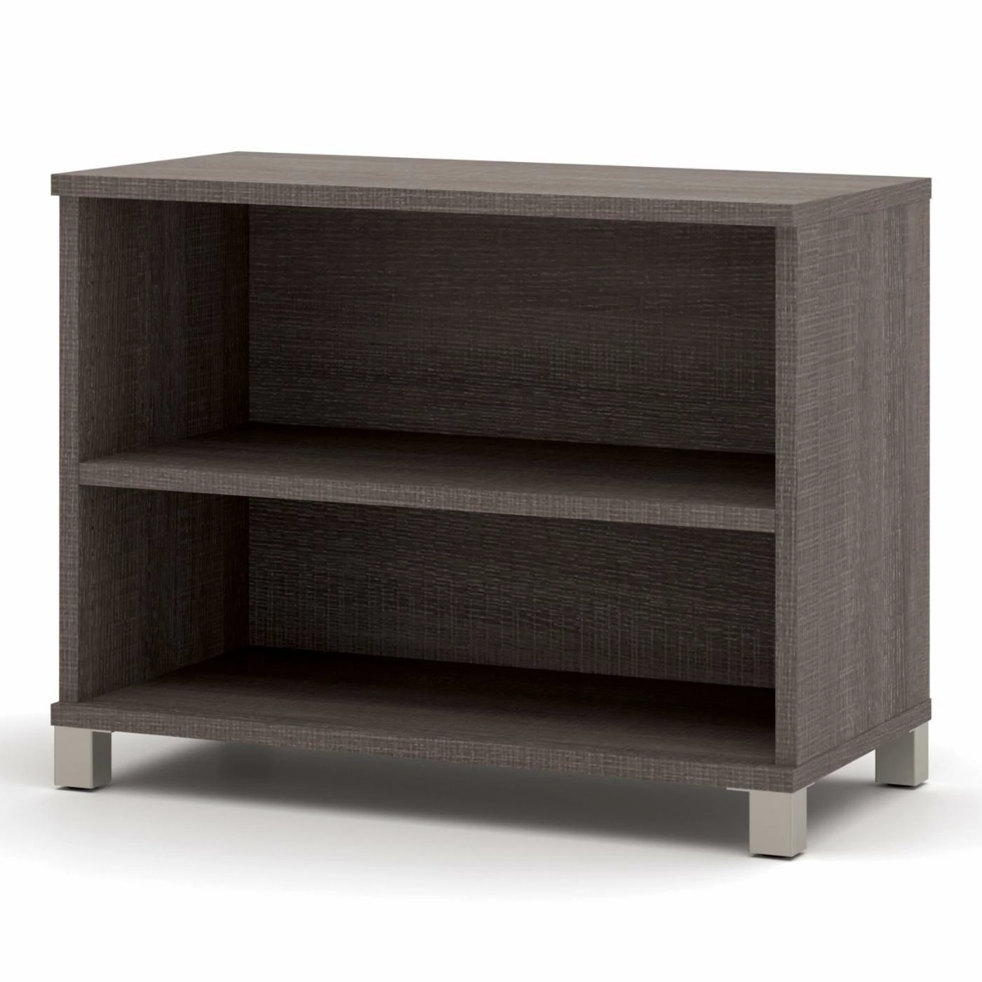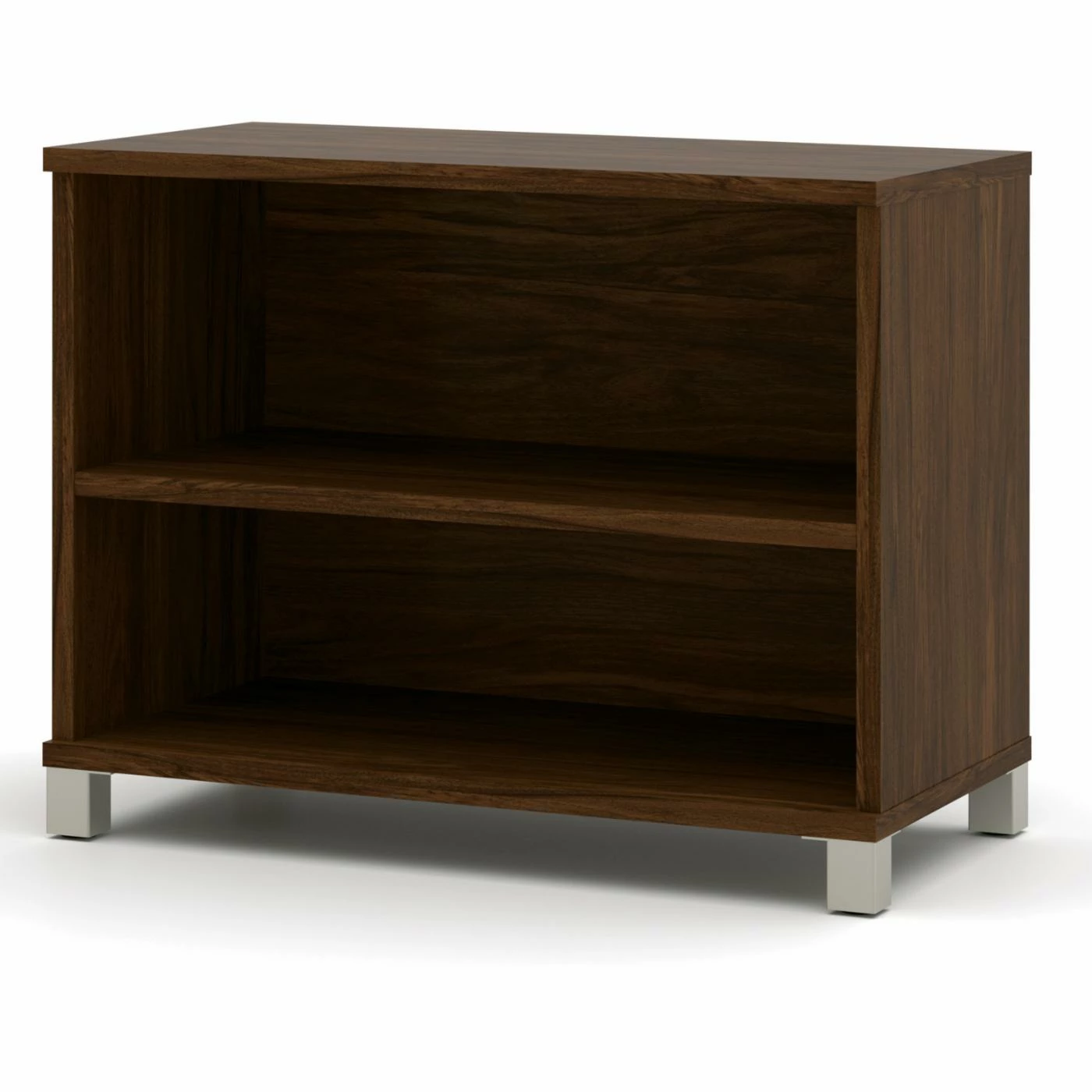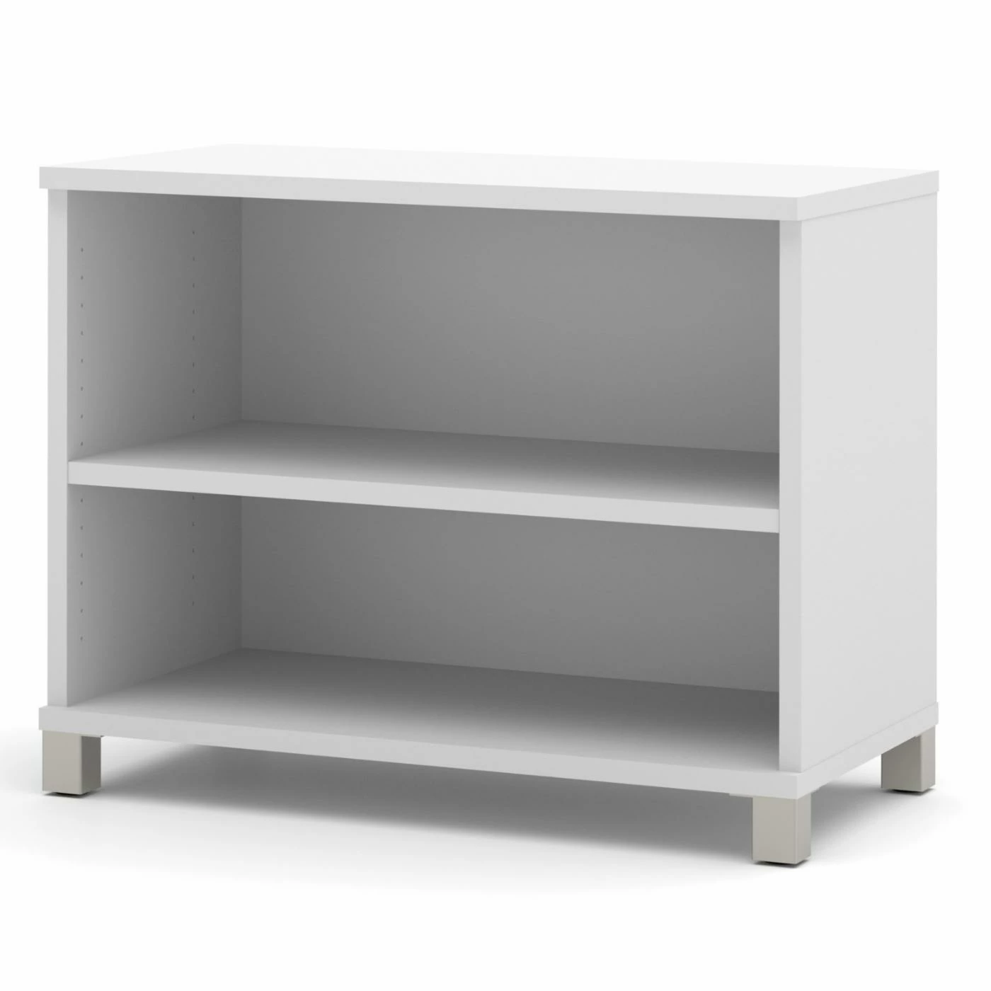 Keep your favorite volumes and important files in one convenient place with the Bestar Pro-Linea 2 Shelf Bookcase. This handsome contemporary-style bookcase looks great in any setting. The bottom shelf is fixed while the center shelf is adjustable, allowing you to customize. A thick, sturdy laminate is used to construct the frame, seating on metal block legs with a polished finish. Choose from available finish options to be suit your color palette.