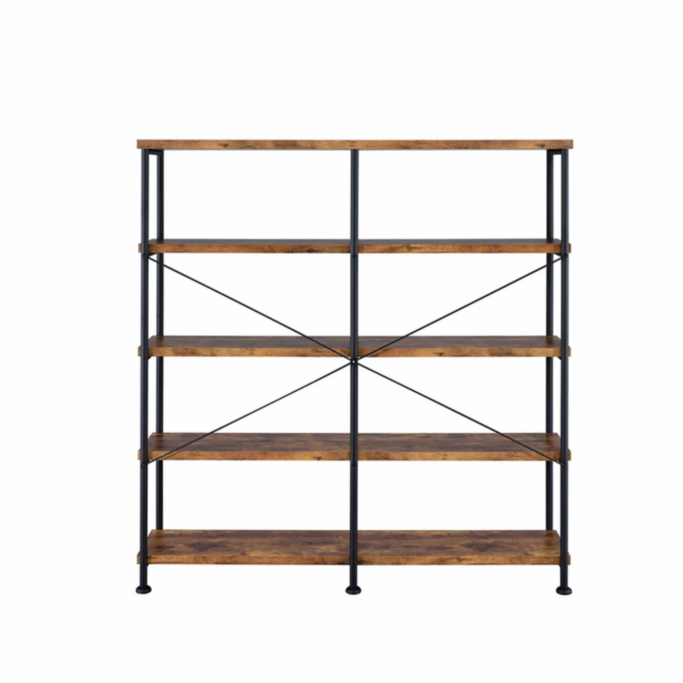 Give your home office a simple, industrial update by featuring the Coaster Furniture Analiese Collection Wide Bookcase. This double wide shelf features a steel framework with a black finish that pops against the warm brown accents. This piece provides plenty of space to showcase your growing book or dΓ©cor collection.