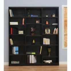 The Concepts in Wood 15 Shelf Wall Storage Bookcase boasts a sturdy design that’s supported by a dowel and European cam-lock system. The 12 adjustable shelves and three fixed shelves of this bookcase offer spacious storage for your home library, videos, decor, and more. The wood veneer of this bookcase lends dimension and texture to its appearance, and its protective polyurethane coating protects it from stains. The 10-step finishing process is environmentally friendly, with zero VOC emissions.