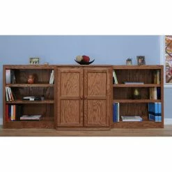 Bring an elegant touch to the storage in your home with the Concepts in Wood 3 Piece Wall and Storage Bookcase. This bookcase is durably crafted with engineered wood and solid wood materials. Choose from the available finishes to coordinate with your dΓ©cor. Display books, dΓ©cor, and other keepsakes on the two sets of open shelves. A convenient cabinet hides office supplies, games, remotes, or other essentials. Find the ideal fit for your home with your choice of available sizes. The 10-step finishing process is stain resistant and environmentally friendly, with zero VOC emissions.