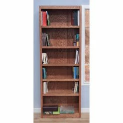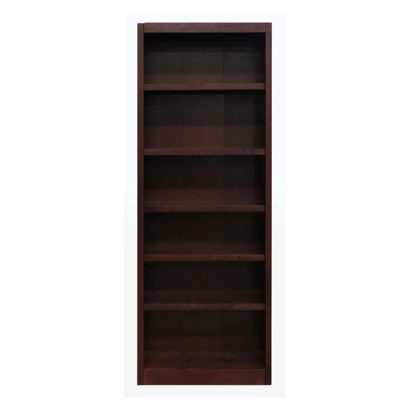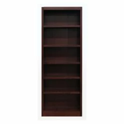 Finished in a wood veneer, the Concepts in Wood Single Wide 6 Shelf Bookcase has a natural look that blends easily into your decor. This bookcase is sealed with a polyurethane coating that protects it from spills and stains. Four adjustable shelves and two fixed shelves provide spacious surface area for storing books and displaying decor. Supported by a dowel and European cam-lock system, this bookcase is strong and sturdy. The 10-step finishing process is stain resistant and environmentally friendly, with zero VOC emissions.