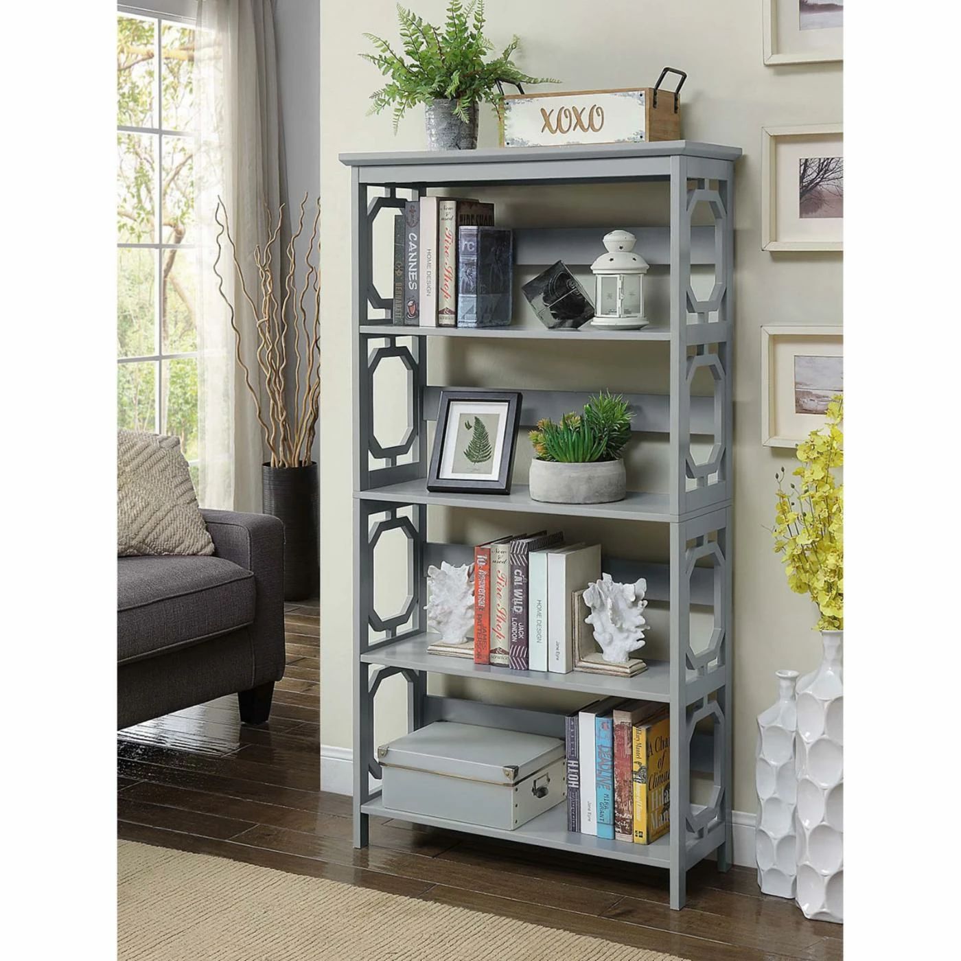 The perfect choice for your cottage or apartment, the Convenience Concepts Omega 5 Tier Bookcase gives you plenty of storage, with an open, airy feel. The five sturdy shelves give you ample space for books and decorative items. Shaped open-designed sides add interest and light. Choose from available finishes. Assembly is required.