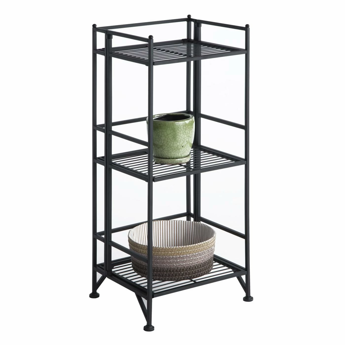 Fold out the Convenience Concepts XTRA-Storage 3 Tier Folding Metal Shelf Bookcase – Black to get ample storage just where you need it. This stainless steel bookcase comes in a rich black that brings out the contemporary style. It has three large shelves to fit all of your favorite knick knacks.