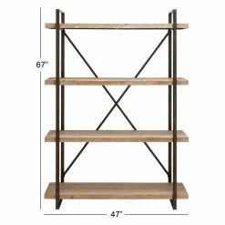 Featuring a sturdy metal frame, the DecMode 4-Tiered Modern Metal and Wood Bookcase boasts a durable construction to support all your books and decor items. Crafted from wood, the four shelves are finished in a light brown color. The rustic shelves and sleek metal frame come together to give this open back bookcase a stylish modern look.