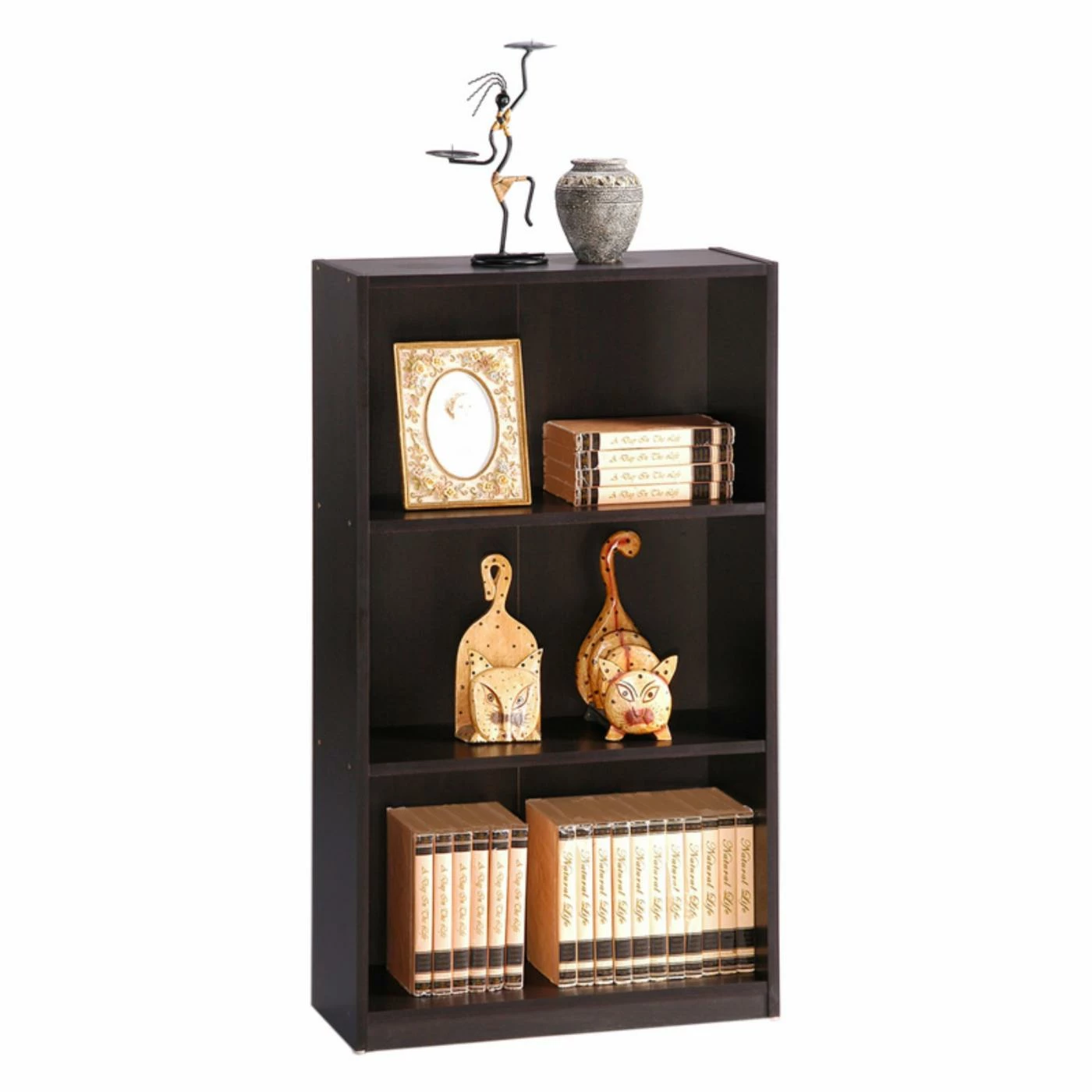 Get back to basics with the Furinno Basic 3-Tier Bookcase Storage Shelves. This three-tier shelf is an easy, stylish storage solution for your home. Two adjustable shelves and spacious cubbies make it a breeze to store all your office or home goods. Easy assembly and your choice of finish make it a perfect option for any dΓ©cor.