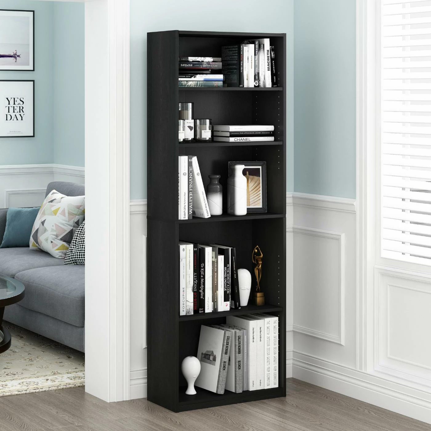 The Furinno Jaya Simply Home 5-Shelf Bookcase is an easy, stylish storage solution for your home. This simple and sturdy bookcase features two adjustable shelves and spacious cubbies that make it a breeze to store all your office or home goods. Easy assembly and your choice of finish make it a perfect option for any dΓ©cor.