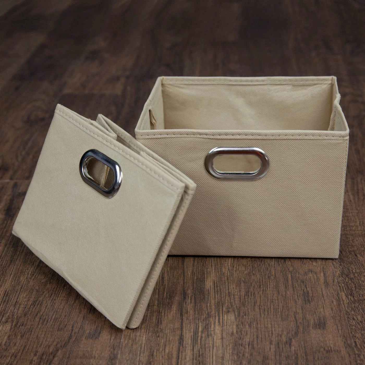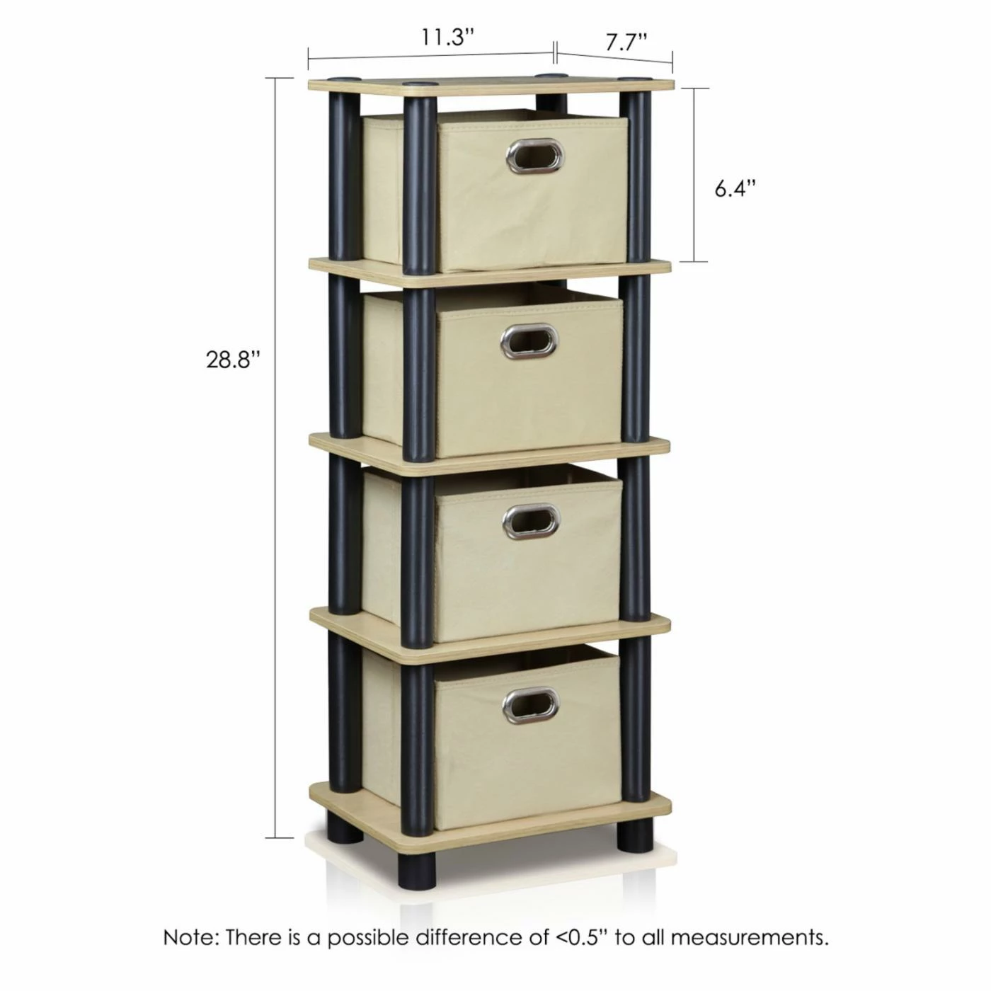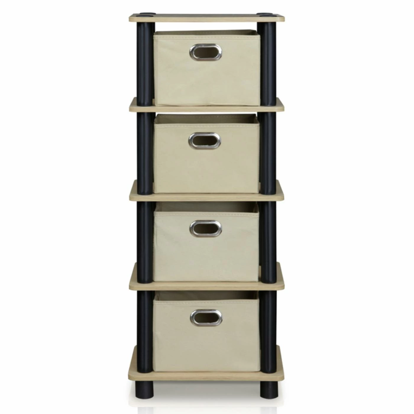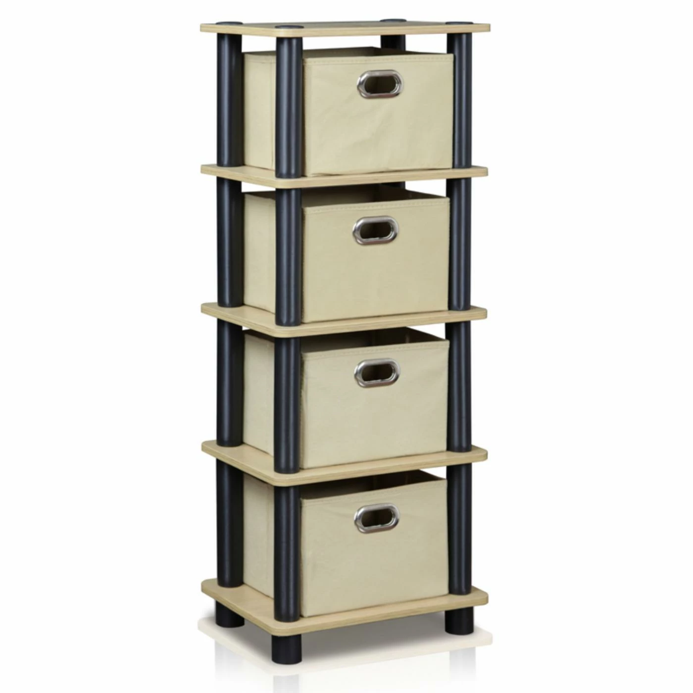 - Features 4 fixed shelves and 4 fabric bins for ample storage