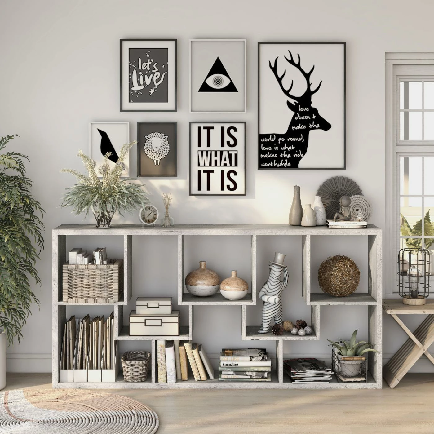 - OPEN SPACE CONCEPT – 360Β° finished frame gives this item versatility to be placed in different positions off the wall. The open back will allow the piece to serve as a natural room divider.