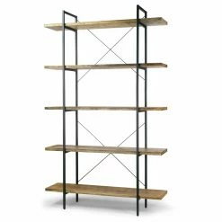 Add sophisticated storage space to your home with the Glamour Home Amrit Etagere Bookcase – Natural / Black. Crafted from durable Paulownia wood and sturdy metal, you can rely on this shelf to hold your books, plants, or other display-worthy items. The five fixed shelves feature an unfinished, natural look to complement a sleek, black frame. Add one or two of these bookcases to your living room or home office for a contemporary yet rustic addition to your dΓ©cor. Slim, x-shaped bars adorn the back of this shelf to complete the look.