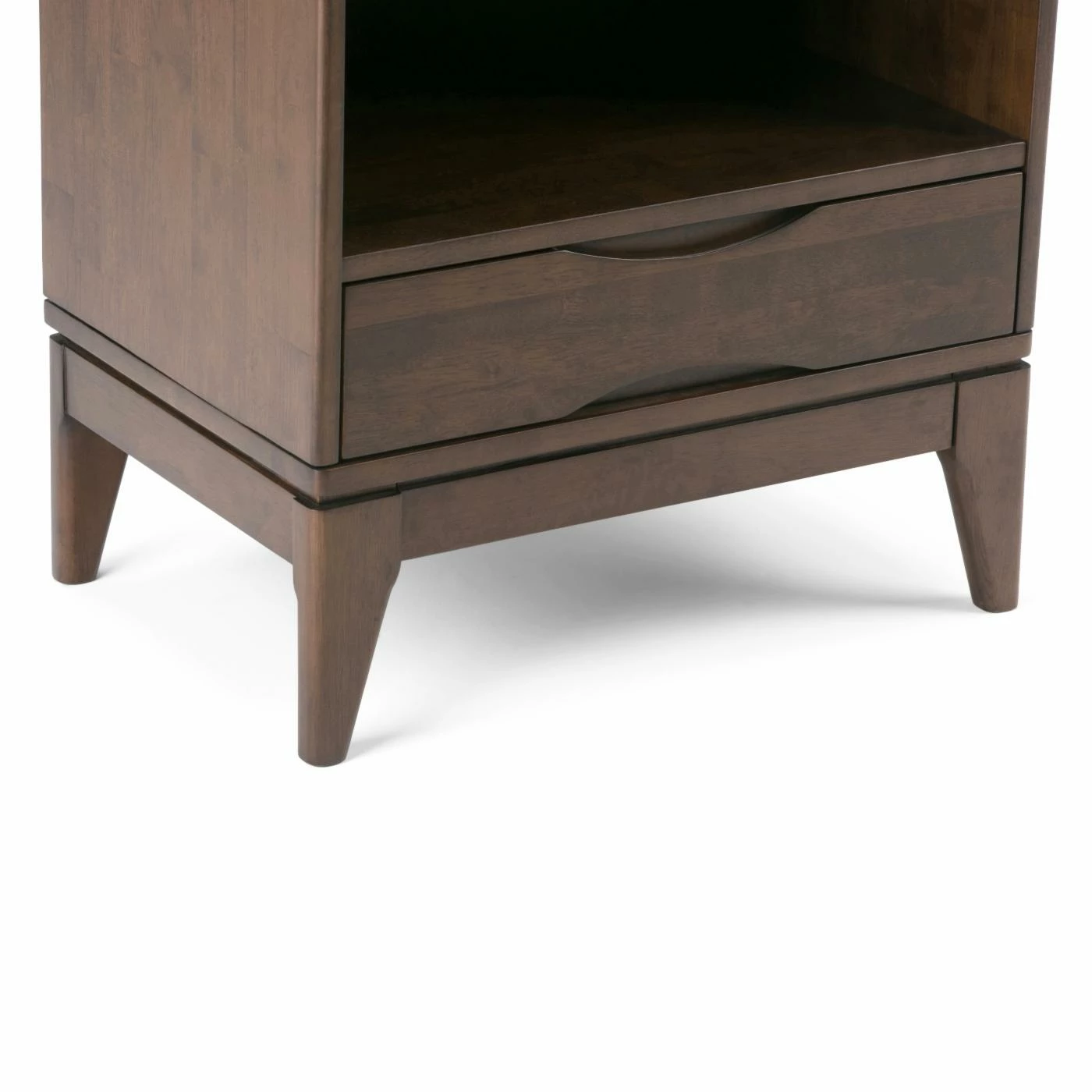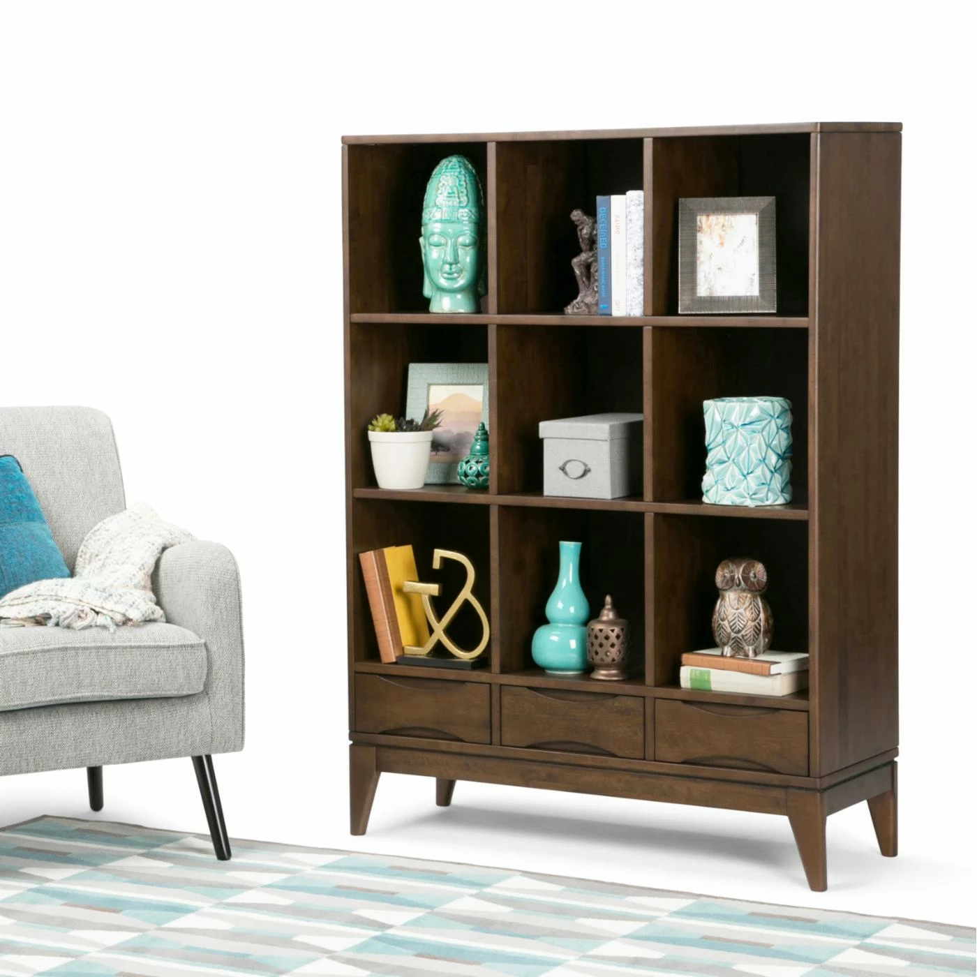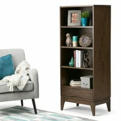 Expand your mid-century styled living room to include more storage thanks to the HN Home Ando Mid-Century Modern Bookcase with Drawer – Walnut Brown. This charming bookcase is crafted from a durable combination of rubberwood and engineered wood. Tapered, splayed block legs support the frame. The top area of the bookcase has four deep shelves, ideal for decorative art, books, and more. A seamless storage drawer comes built into the base, which is outfitted with a notched bottom handle. The wood comes finished in a handsome walnut brown.