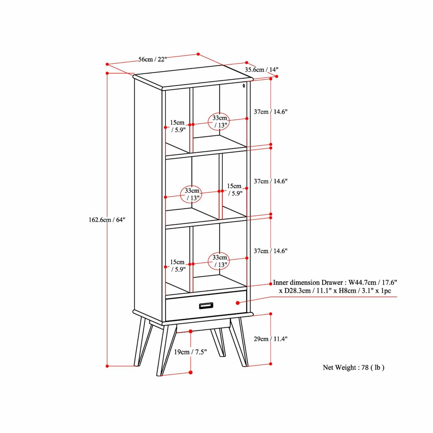 - Dimensions: 22W x 14D x 64H in.