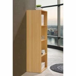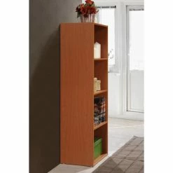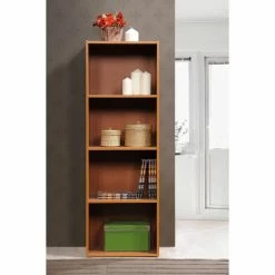 Improve home or office organization with the Hodedah Imports Four Shelf Bookcase. This sturdy compressed wood bookcase features four fixed shelves. Use these shelves to display books, organize paperwork, or showcase your favorite decorative items.