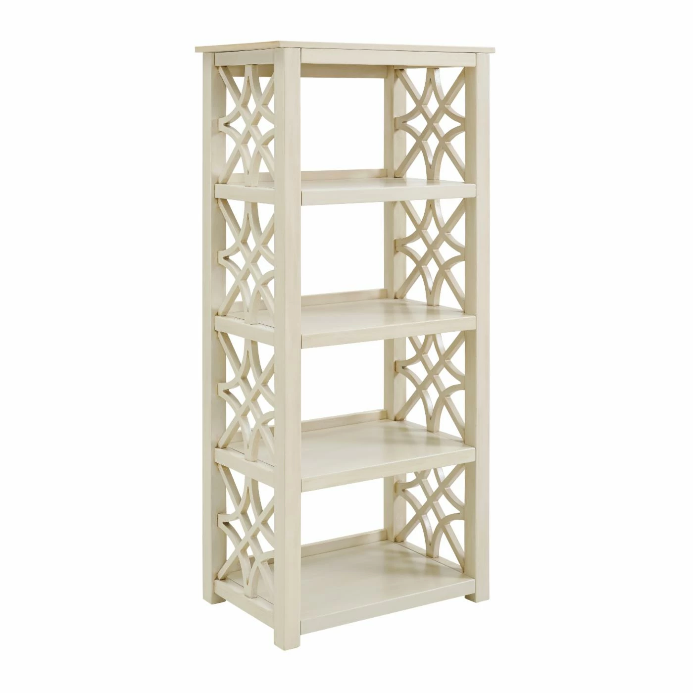 Display your favorite curios or books on the Linon Whitley 4 Shelf Bookcase. Four shelves provide ample space for decorative items, towels, baskets, and more. Its durable pine and engineered wood construction is strong and durable. The antique white finish complements most decors and highlights the intricacies of the geometric design on the sides.