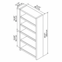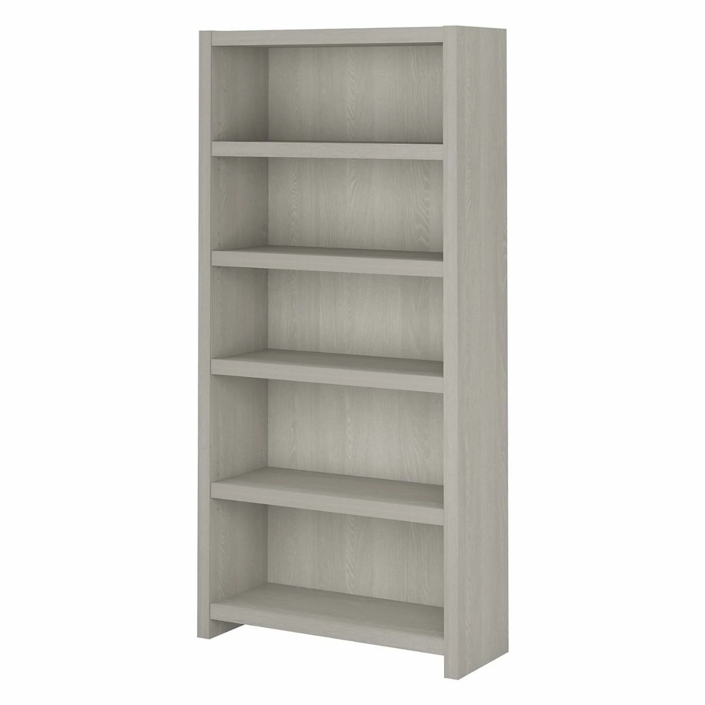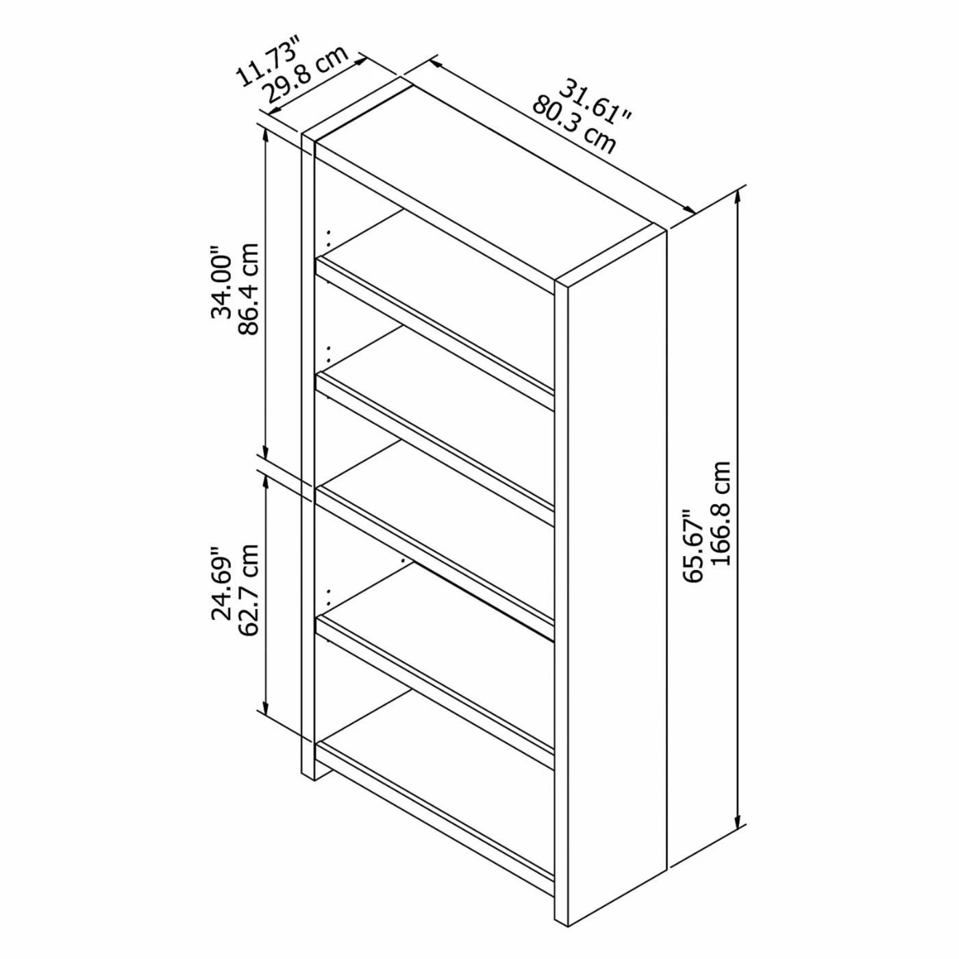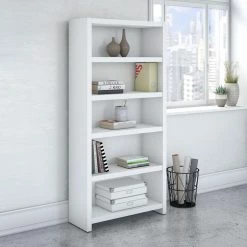 For a contemporary look, the Office by kathy ireland Echo 5 Shelf Bookcase features thick lines and a variety of thermally fused laminated finishes. This five-shelf bookcase includes three adjustable shelves for customized display space. It’s perfect in the home office or living room.