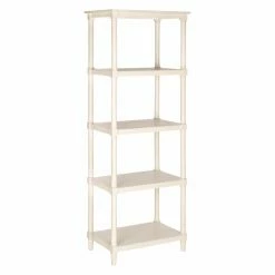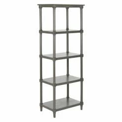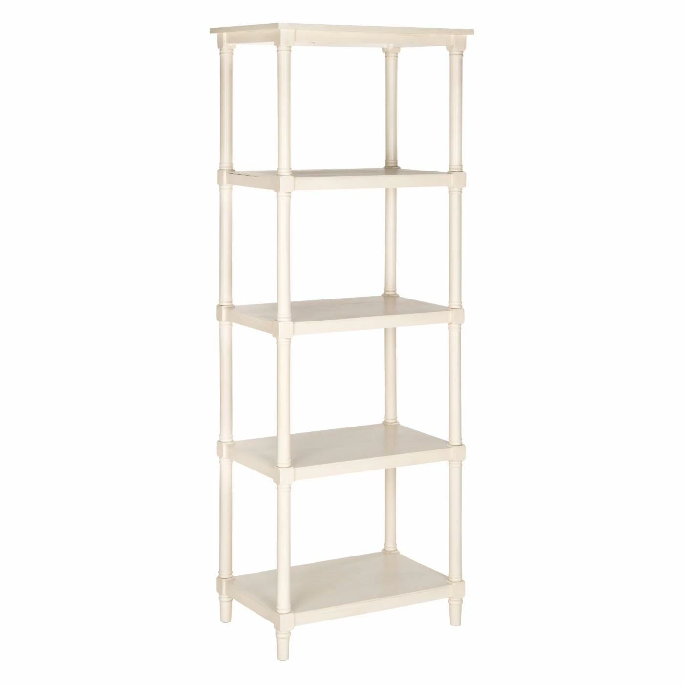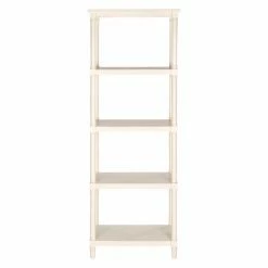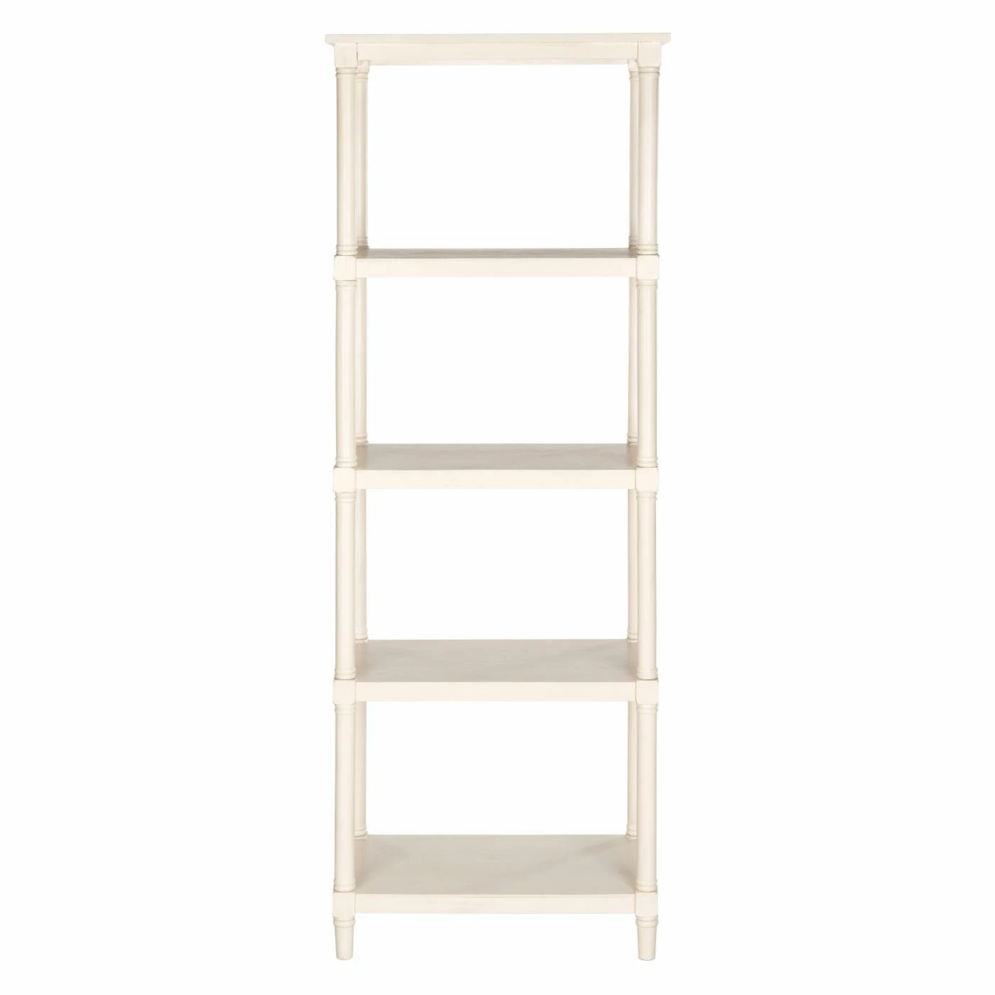 Spruce up your living space with the Safavieh Odessa 5 Tier Bookcase with Spindle Style Frame and open back design. This sturdy bookcase is crafted of durable pine and engineered wood with four shelves for novels and added storage on the top. The four-leg frame features spindle detailing, adding a touch of everyday-elegance to your living room or dining room.