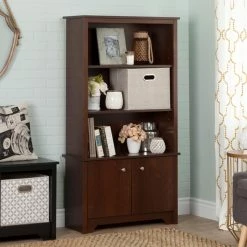 Get customized display space and storage with the South Shore Vito 3 Shelf Bookcase with Doors. This laminated engineered wood bookcase includes adjustable open and enclosed shelving. Choose from a range of finish options to make this bookcase a good match to your room.