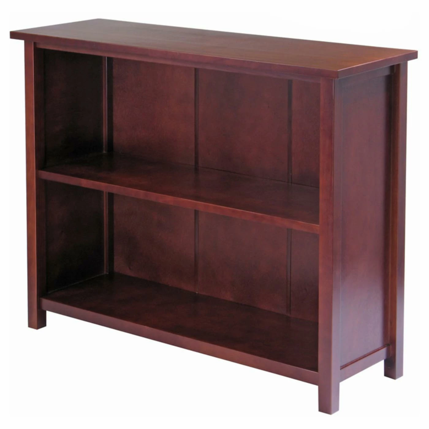 The Stephanie 2-Shelf Bookcase offers a great alternative to ordinary home decor. Constructed of beech wood and finished in an antique walnut stain, this bookcase features two large shelves for books, curios, and more, and the top is perfect for displaying photographs. It is perfect for the home or office. Dimensions: 39W x 13D x 30H inches.
