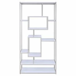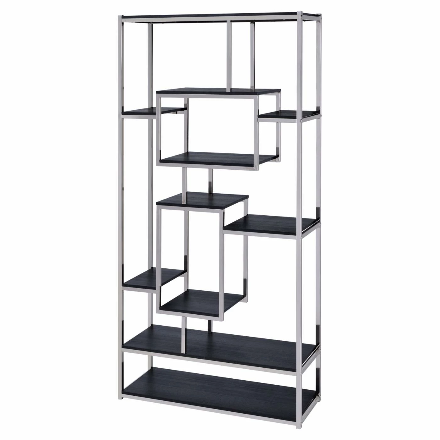 Add a boost of contemporary style to your décor with the Steve Silver Co. Alize 71 in. Twelve Shelf Decorative Bookcase. Variegated shelving lends a modern, artsy effect to the room. The sleek metallic frame contrasts beautifully with the rich brown finish of the shelves. Pair with the matching Alize writing desk for a complete look.