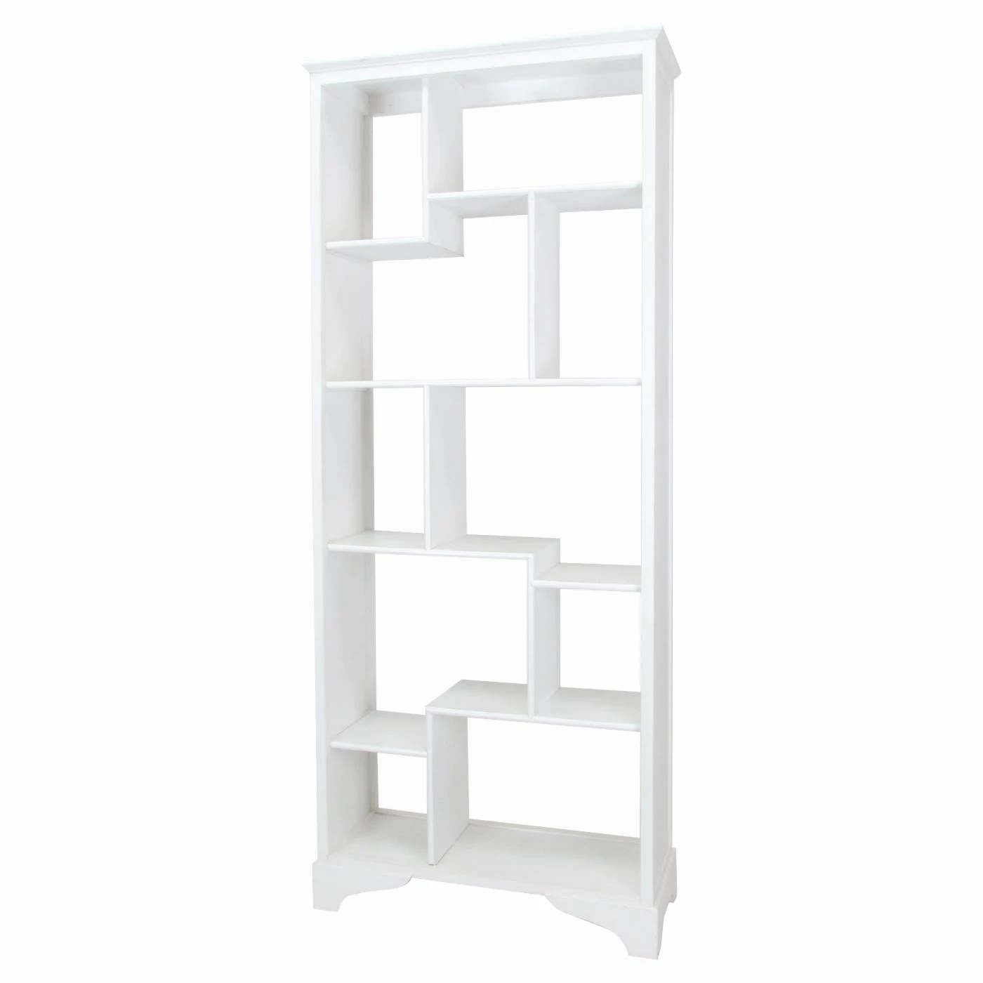 The Wayborn Vertical Asian Decorative Bookcase is waiting for you to fill it with your favorite accessories. Made from sturdy pine wood with a white wash finish, this contemporary bookcase features an open back and contoured design.